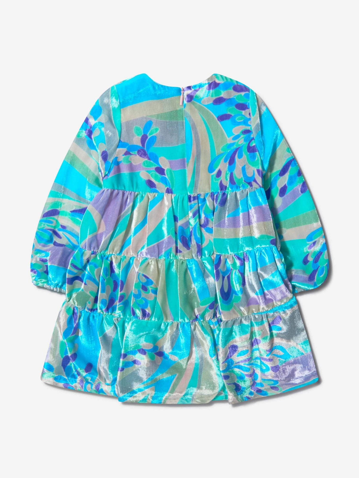•A chic revamp to your girls’ wardrobe with this breathtaking Emilio Pucci’s Silk Patterned Dress in Blue. Invest in style and comfort today for your little fashionista. Be quick and order now!