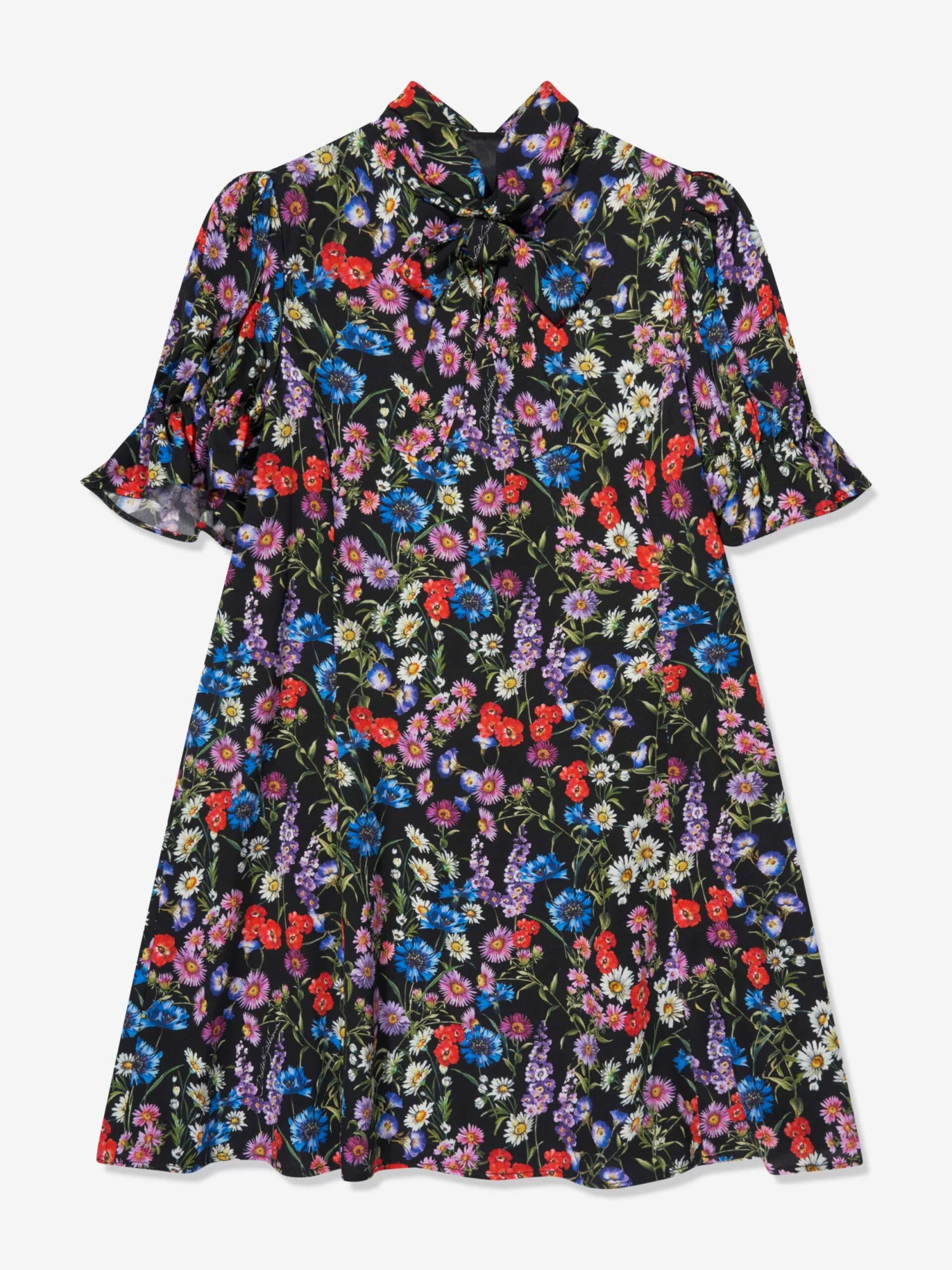 Dolce & Gabbana incorporate romantic connotations into their beautifully constructed designs. This girls silk wild flowers dress is part of the Prateria Collection which is inspired by the women’s 2001 New Hippy Collection with an intricate focus on vintage grunge wear. Crafted in a Bohemian style via shorty puff sleeves and a short-sleeved charmeuse print.