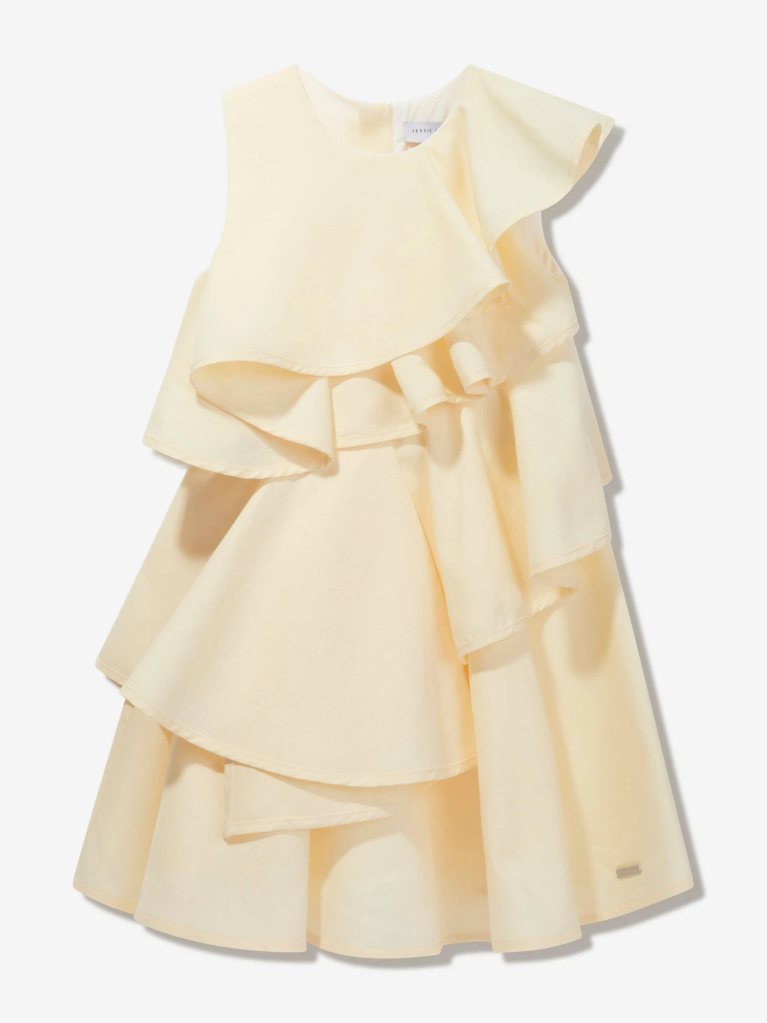 Jessie and James embody timeless elegance and modern charm. This girls sunshine yellow skyline occasion dress combines classic style with contemporary flair. Crafted in tiered, exaggerated ruffles cascading down towards the hem via refined cotton. She will be obsessed.