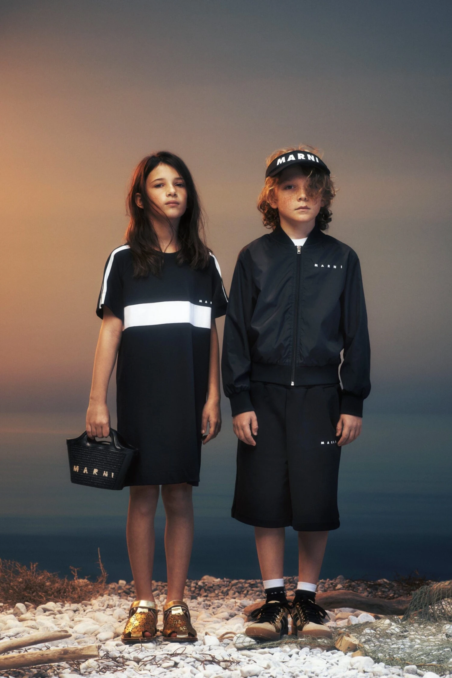 Introducing the Girls Striped Logo T-Shirt Dress in Black by Marni- it’s not just clothing, it’s a statement piece for your girl’s SS2024 outfit repertoire.