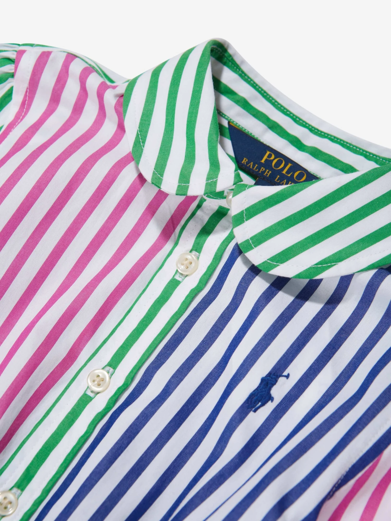 Ralph Lauren reconceptualise traditional tailoring into spellbinding fits that capture iconic American craftsmanship. This baby girls multicoloured shirt dress is reflective of the label’s sophisticated construction. Crafted in cotton jersey with stripes, pearlescent buttons, a tie-up belt and peplum hem. The look is complete with the signature embroidered polo player logo.