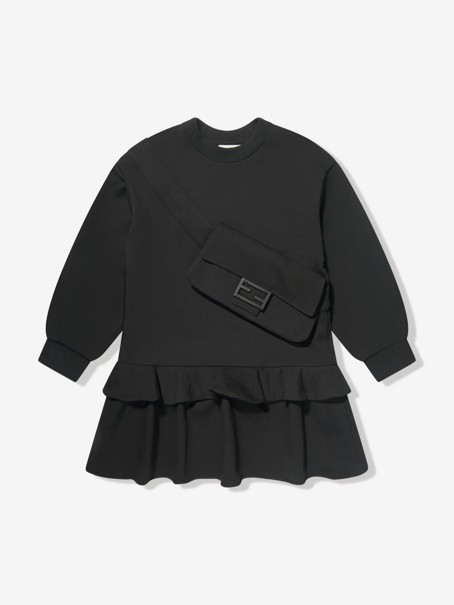 Fendi embody passion and Italian elegance in their beautiful aesthetics. This girls black dress captures the label’s passion for utilitarian styles reconceptualised into stylish abstracts. Crafted in superior cotton with tiered ruffles, an enlarged 3D bag pocket on the front with an FF press-stud flap and a strap stitching on the back. Both unique and versatile, she will be obsessed.