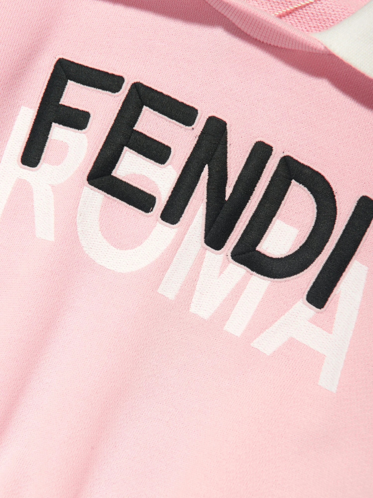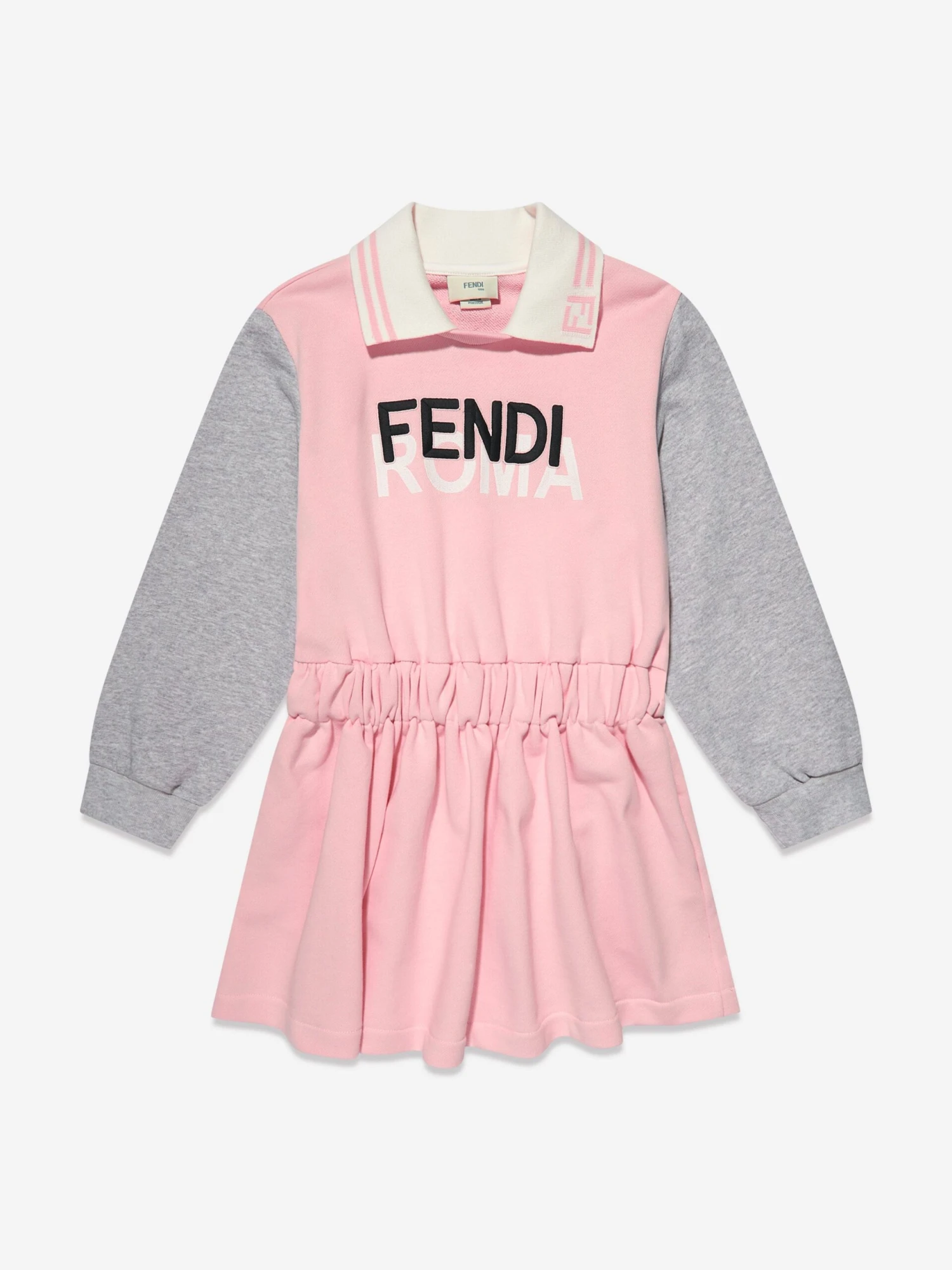 Fendi embody passion and Italian elegance in their beautiful aesthetics. This girls pink sweater dress captures the label’s passion for utilitarian styles reconceptualised into stylish abstracts. Crafted in a sporty style with Fendi Roma embroidered print, a cinched elasticated waist, a ribbed pink stripe collar and pleated skirt. Complete with side pockets, she will be obsessed.