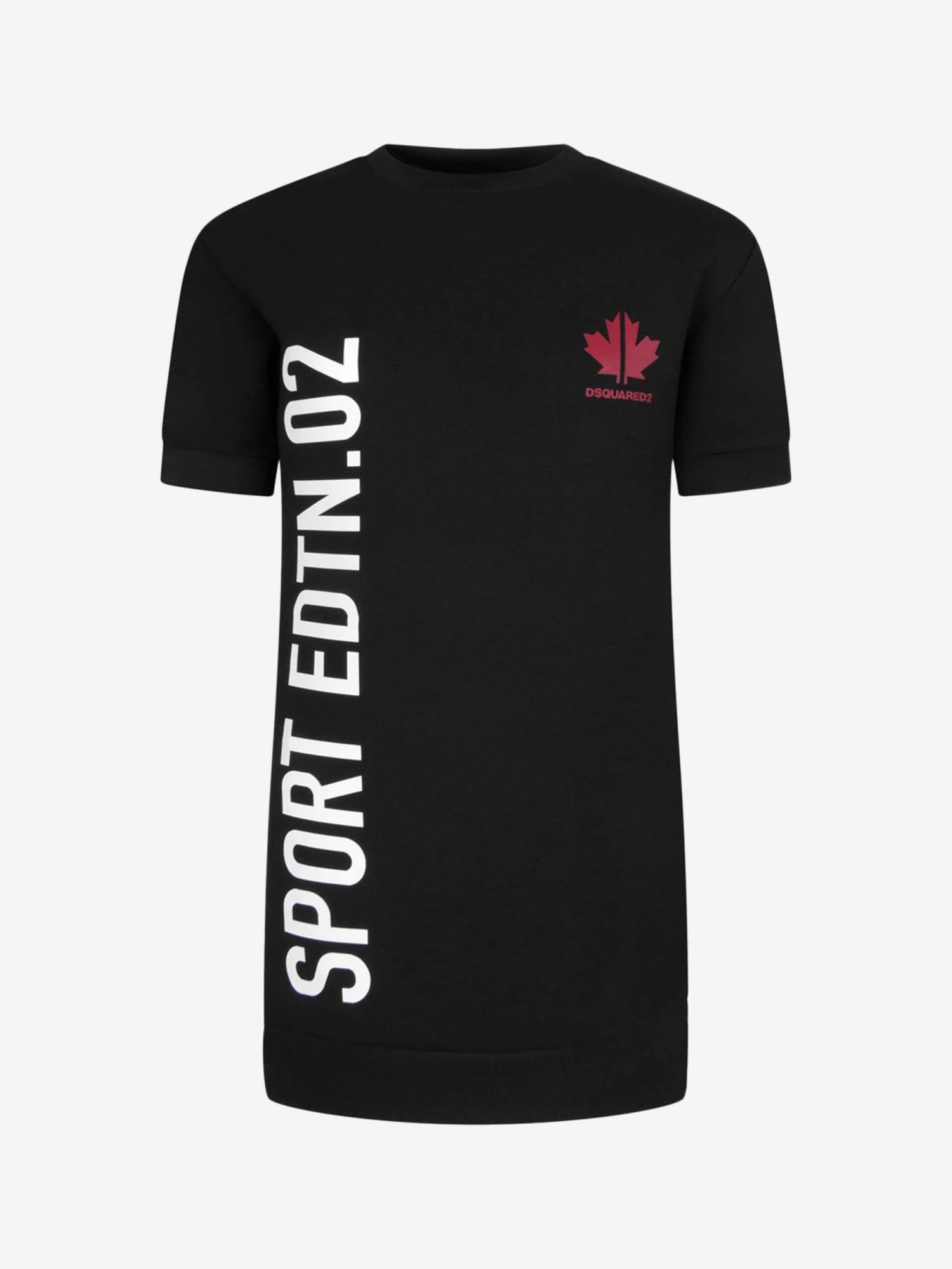Dsquared2 embody innovation and passion into their beautifully crafted designs. This girls viscose dress in black is a striking piece showcasing a bold maple leaf print and sleek, unapologetic detail. It is cut out at the back for extra innovative glamour. She will be obsessed with such a versatile piece.