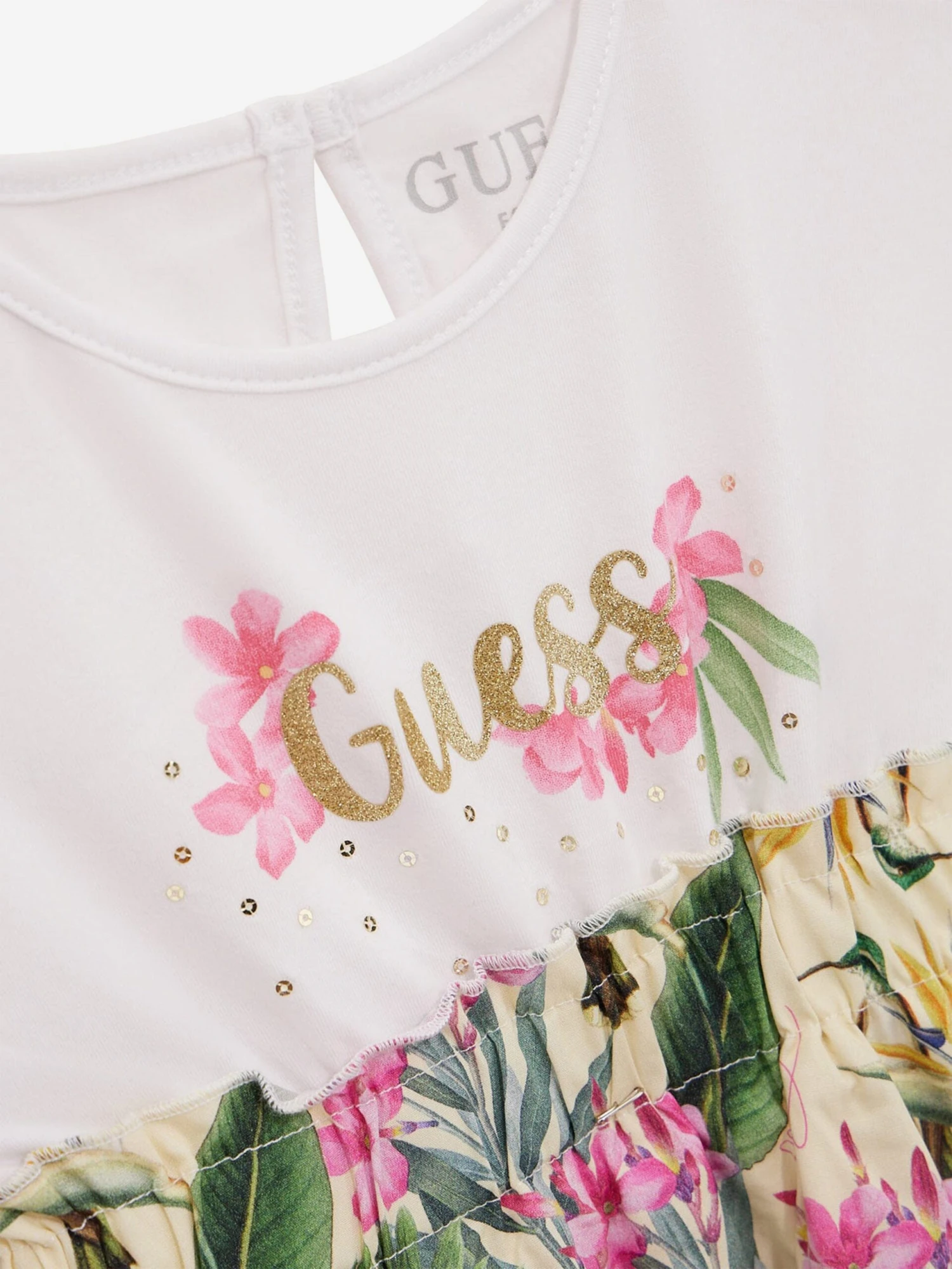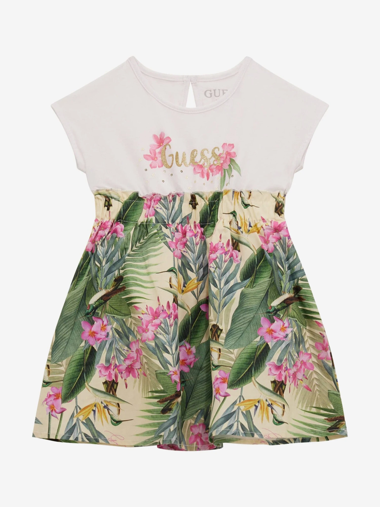 • Upgrade Your Kid’s Fashion: Elevate your child’s fashion quotient with the Girls Floral T-Shirt Dress in White from Guess. Order now and let your girl exude her unique style confidently!