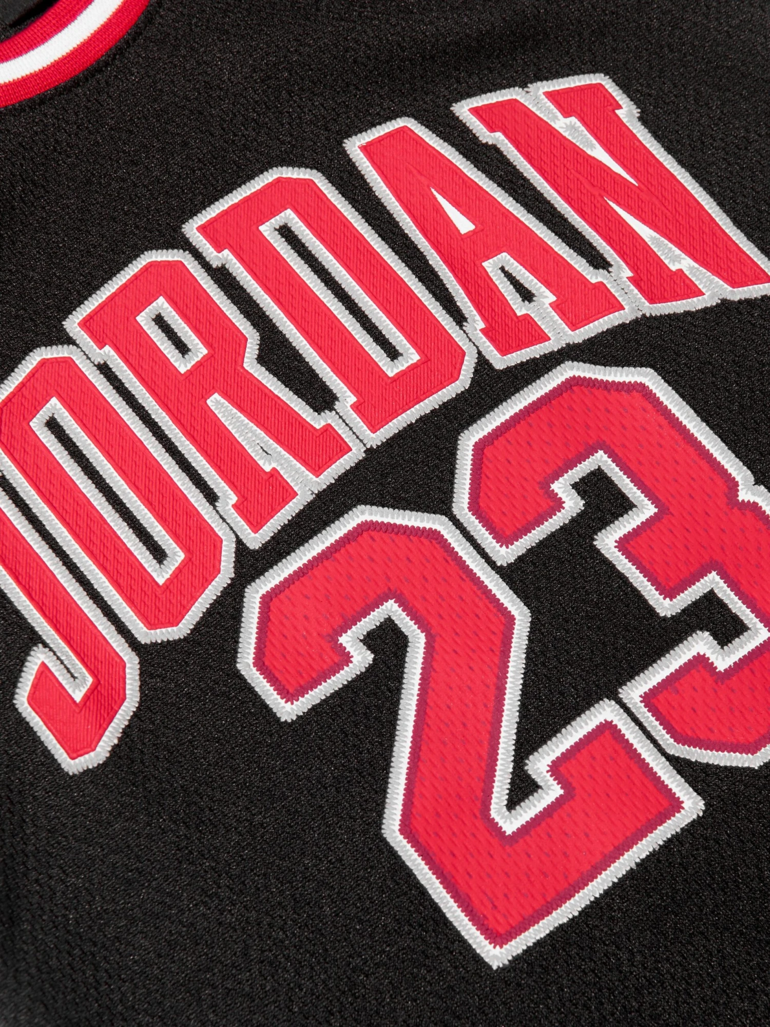 Jordan encapsulate passion and inner strength in their timeless, effortlessly versatile fits. This girls black dress set embodies modern technology and a reconceptualised outlook. The top is adorned with Jordan 23 metallic effect embroidery and ribbed stripe contrasting trims, also signified by the Michael Jordan silhouette ‘Brand of Flight, ’23 Quality Products Inspired By the Greatest Player Ever’ patch.