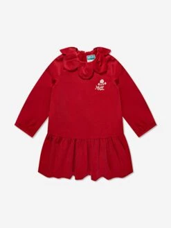 Presenting the Girls Palatine Velvet Dress in Red by Kenzo, a festive staple for your little one! This dress flawlessly unites elegance and coziness, tailor-made for the Christmas season. Discover the appealing features:
