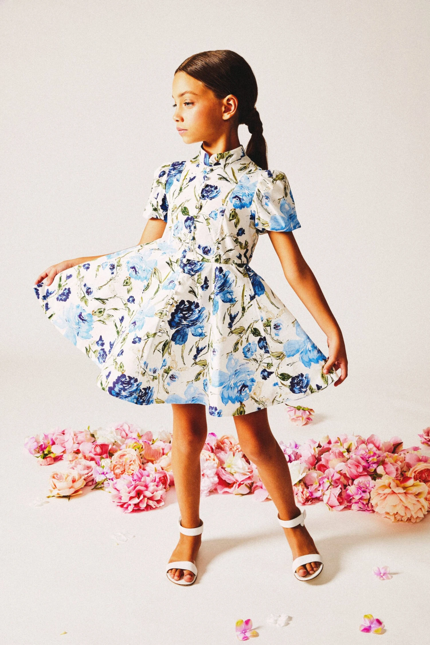 Illuminate your little one’s Eid festivities with our exclusive Marchesa’s Girls Floral Print Dress in Blue. A beacon of Italian designer expertise, this stunning dress embodies fashion and function like no other. Highlighted features include: