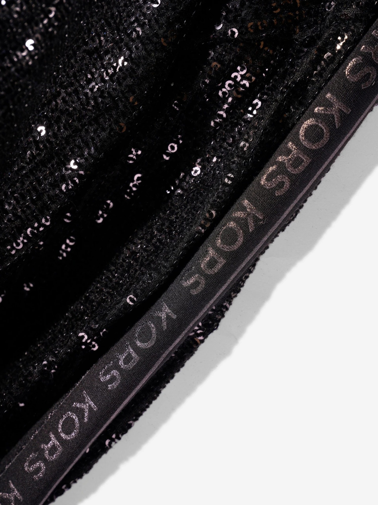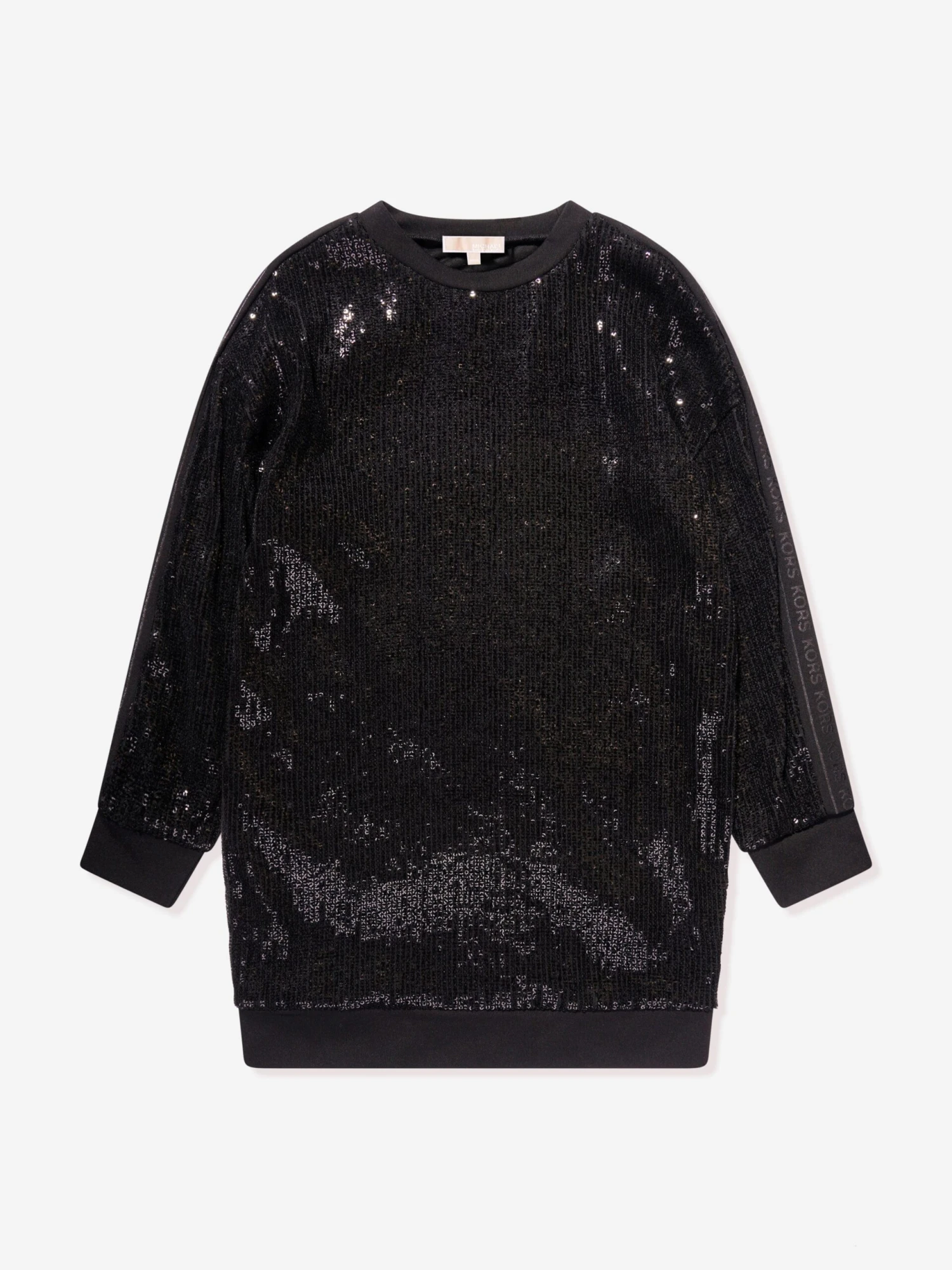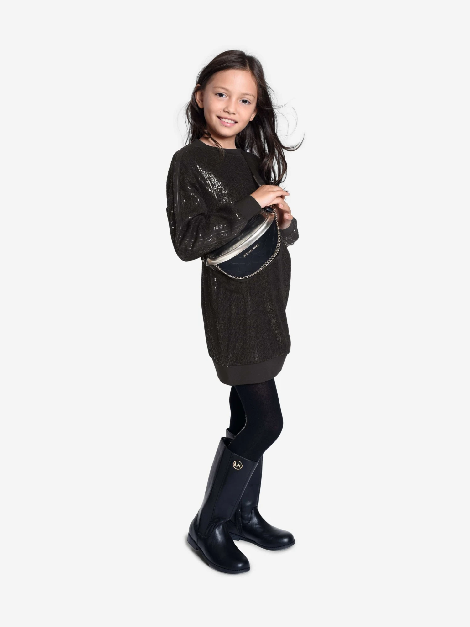 Michael Kors incorporate a sporty attitude and modern glamour into their stylish aesthetics. This girls black long sleeved dress has been depicted in a cotton sequin material with tape Michael Kors branding down the sides.