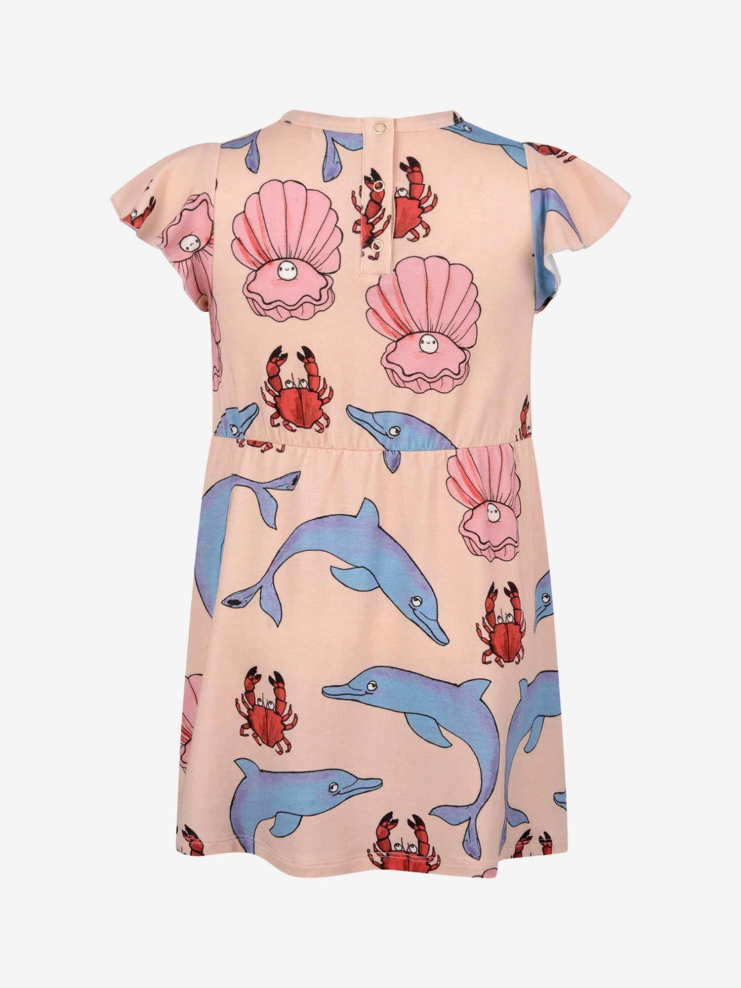 • Boost your girls’ wardrobe with this stunning pink cotton dolphin print dress from Mini Rodini. Grab this treasure now and watch your angel shine in style!