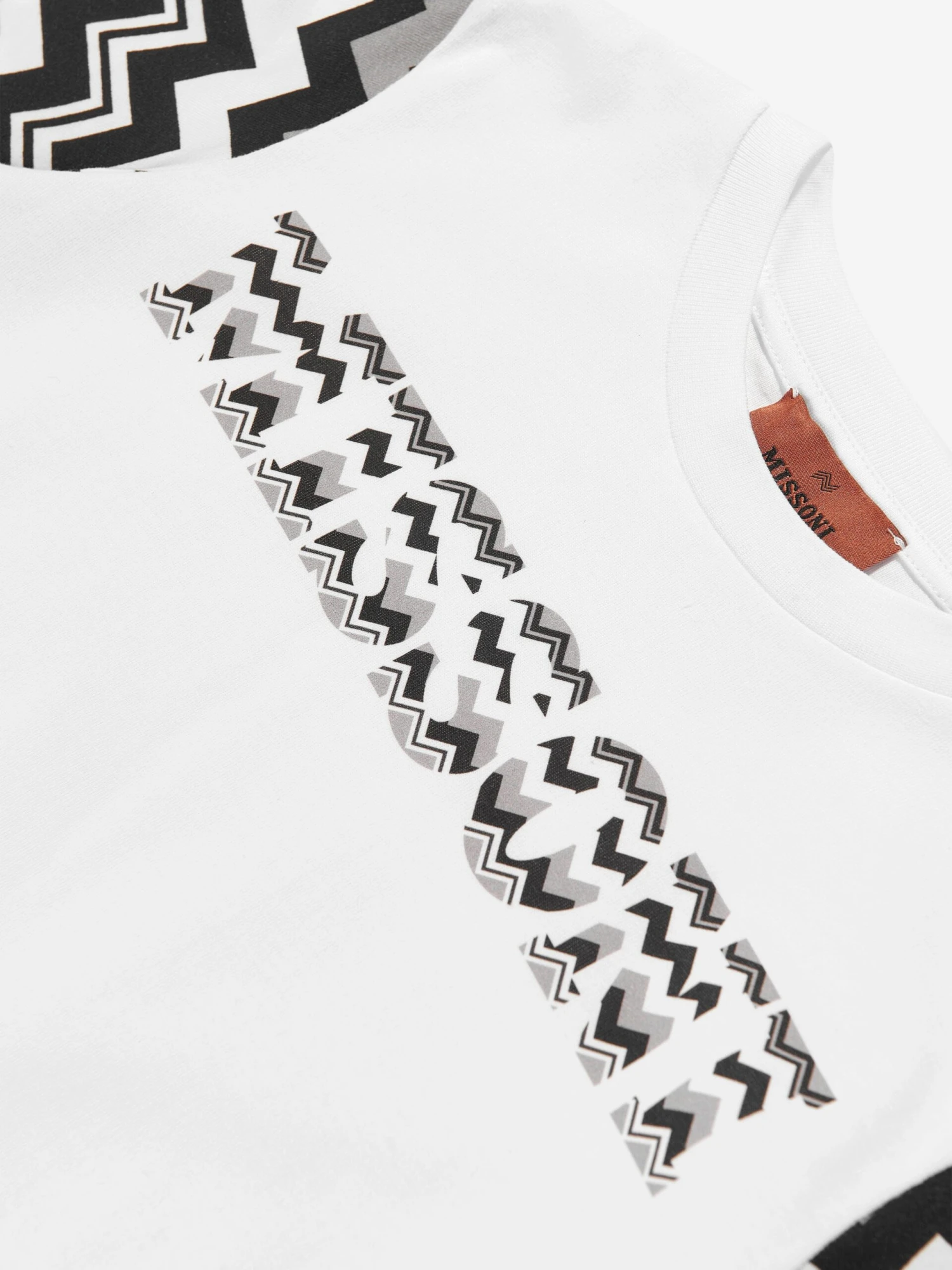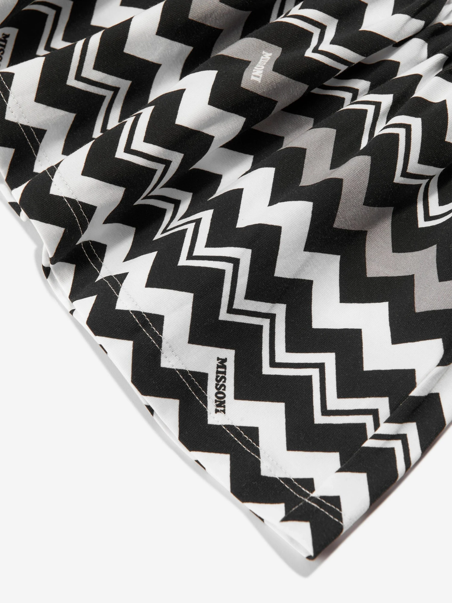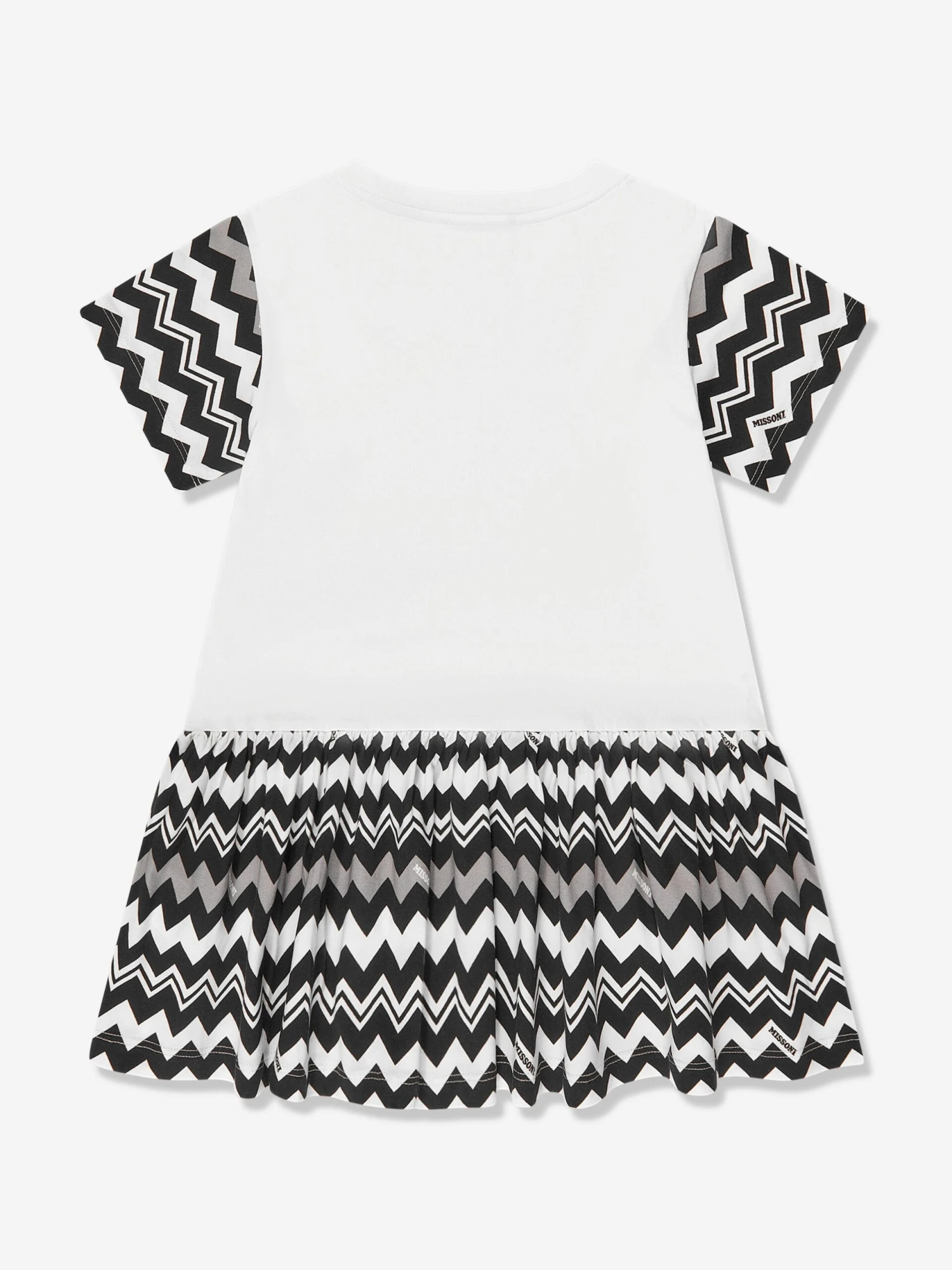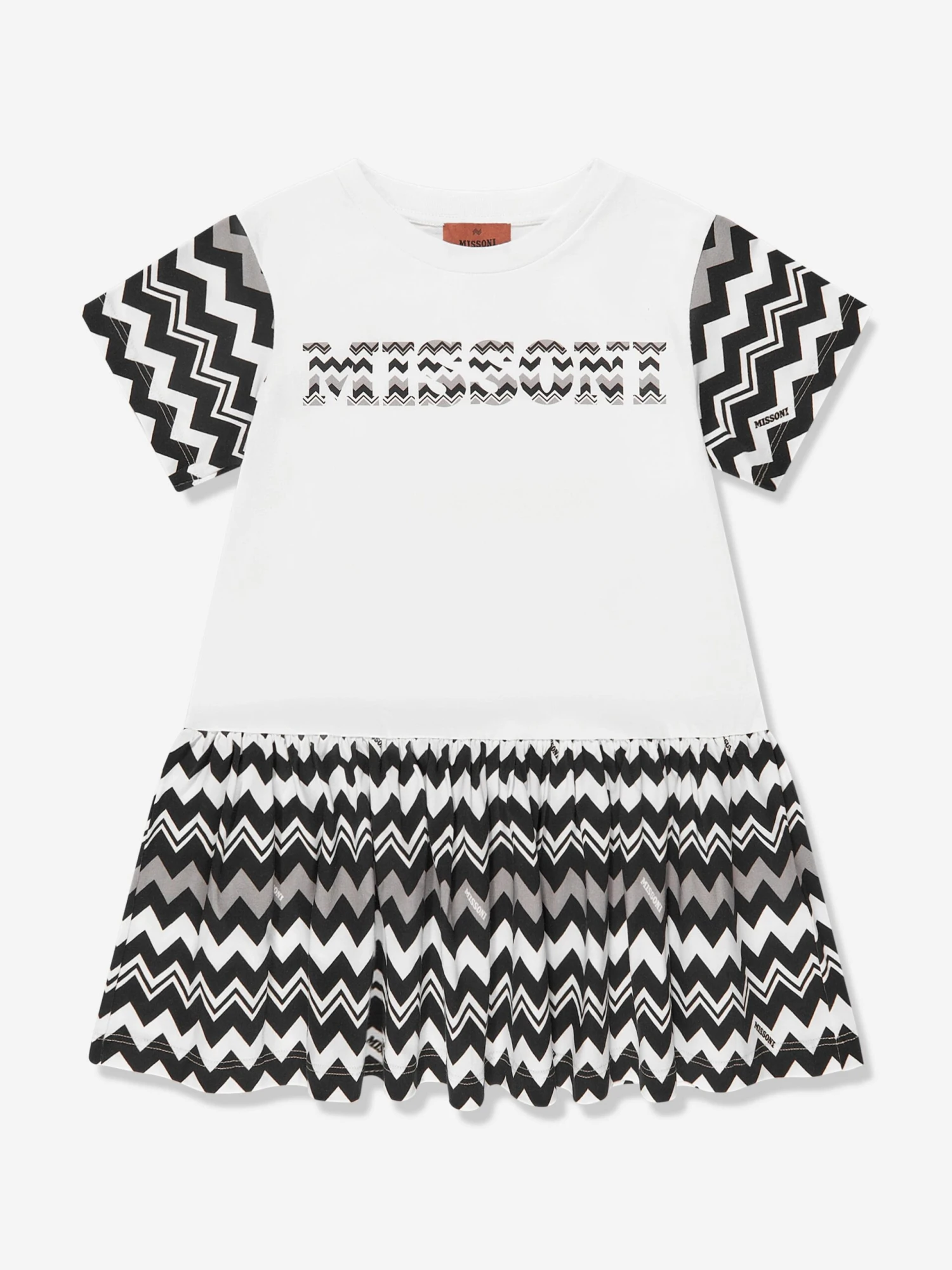Missoni’s reputation for Italian craftmanship and quality are apparent in this girls jersey dress. Crafted from a soft and smooth cotton, the vibrant piece displays the label’s iconic zig-zag pattern across the sleeves, skirt and central logo print in shades of black and grey . Perfect for parties and playdates.