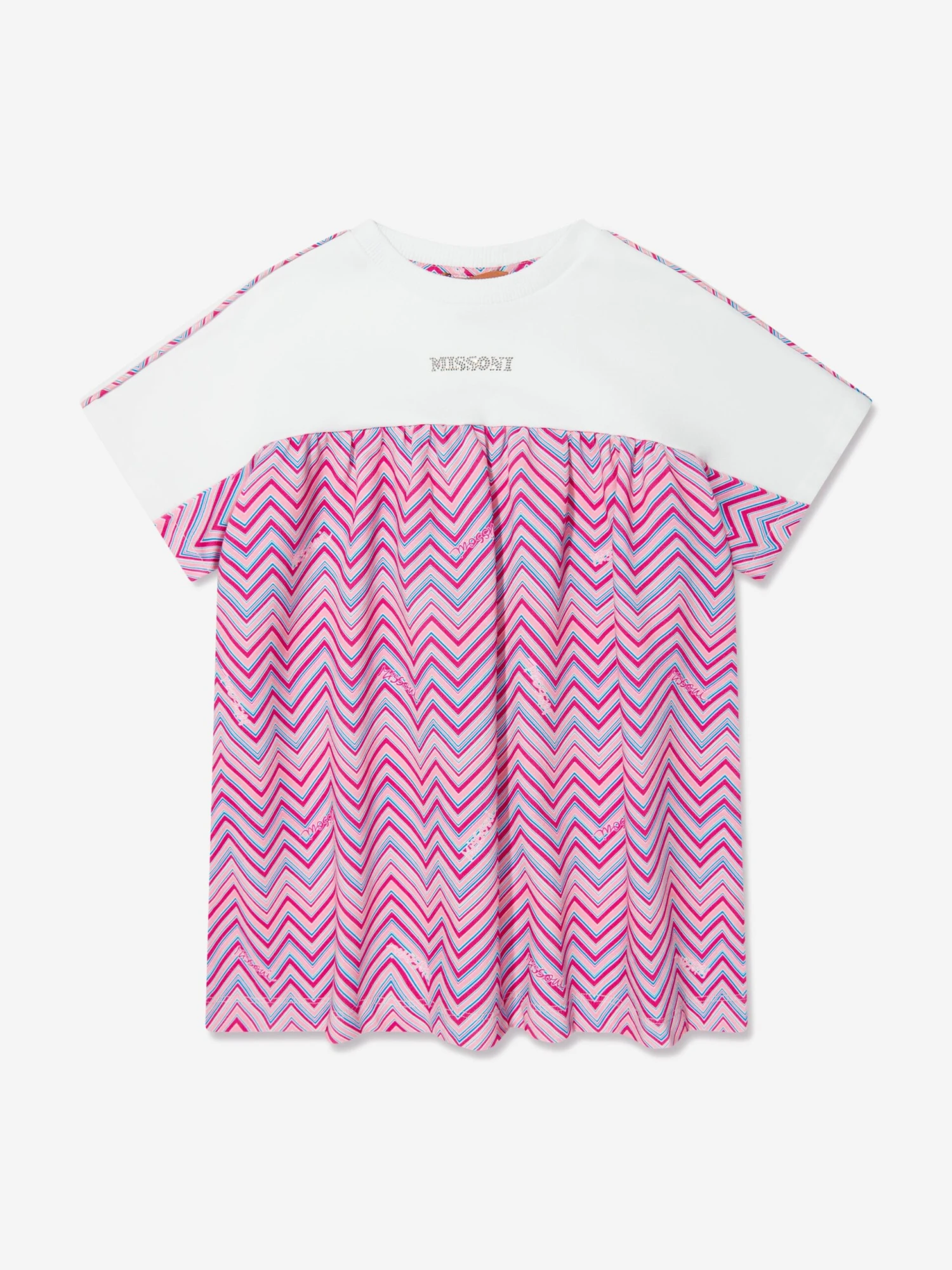 Presenting the Girls Zigzag Jersey Dress in Pink by Missoni, a luxurious addition to your little girl’s wardrobe! Here are the stylish features of this designer piece: