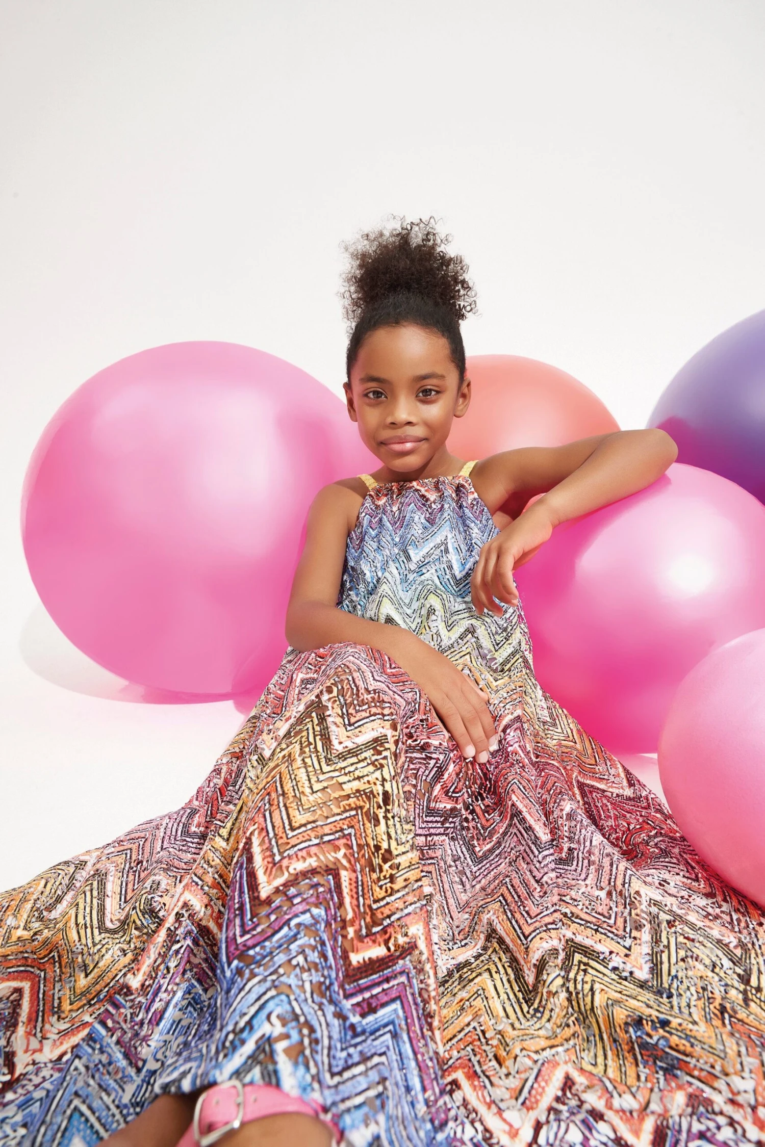 Introducing the Girls Zigzag Maxi Dress in Multicolour, a chic, high-end addition to every girl’s wardrobe. Crafted with an artisan touch by Italian designers Missoni. Key features include: