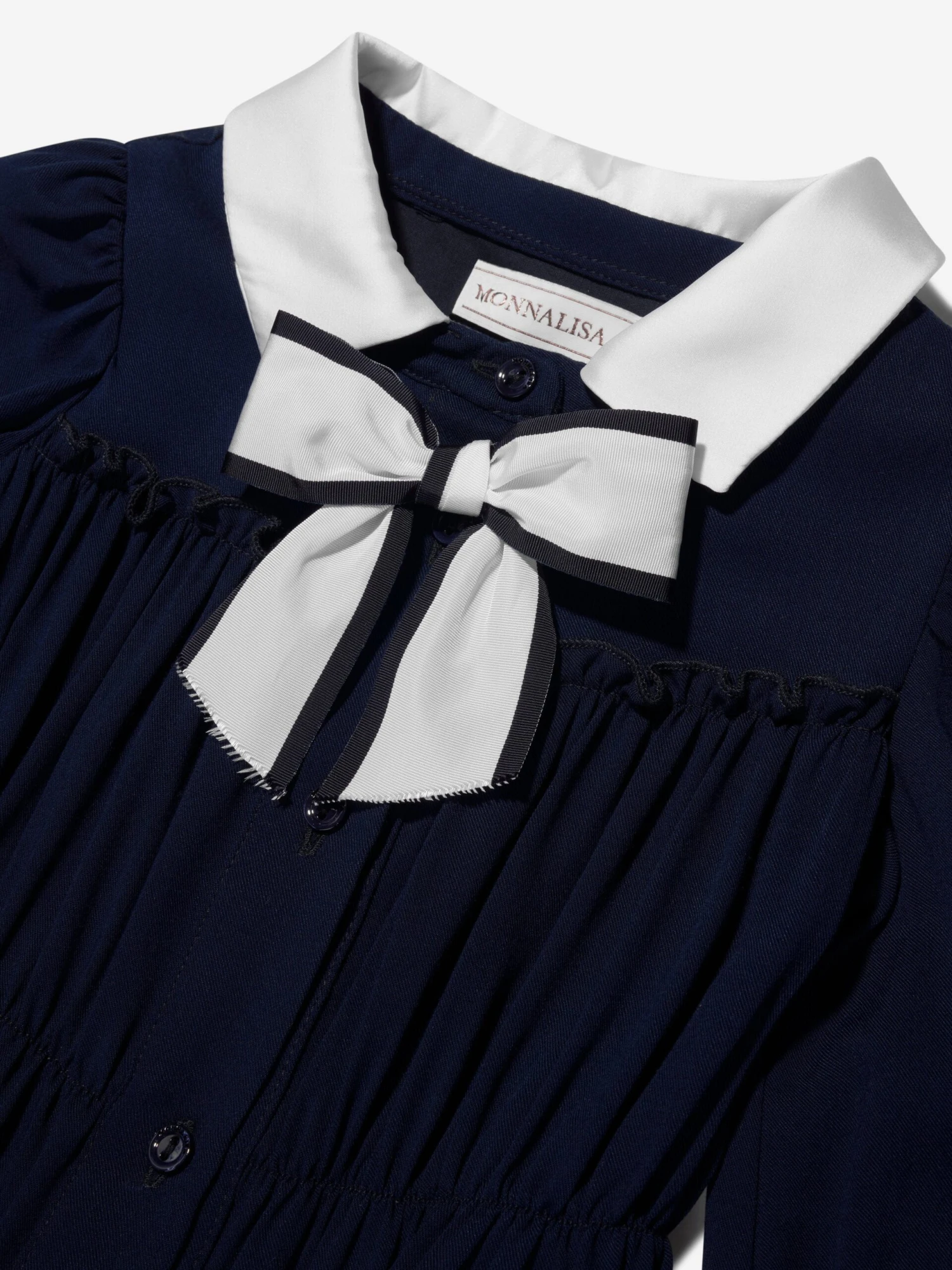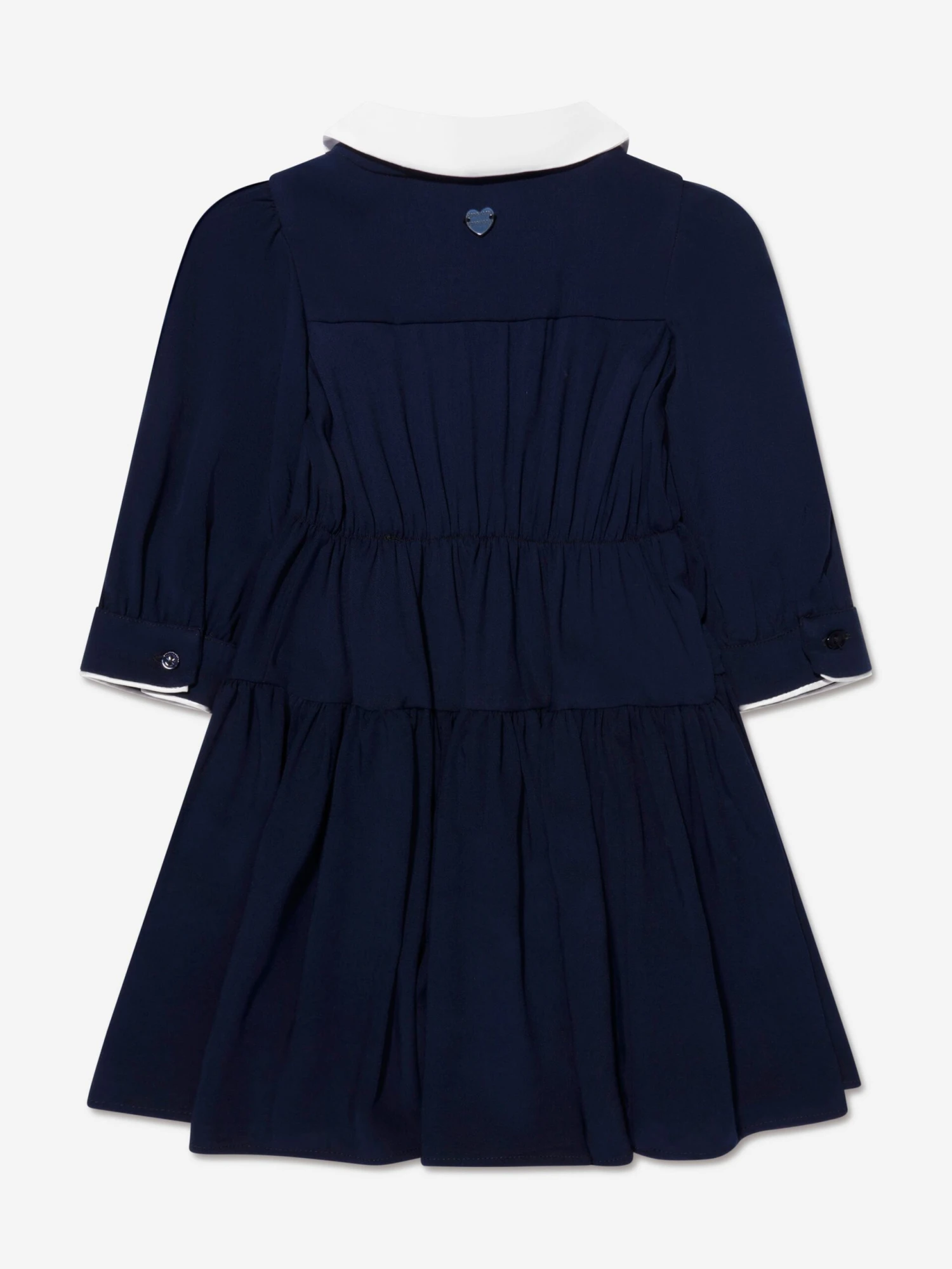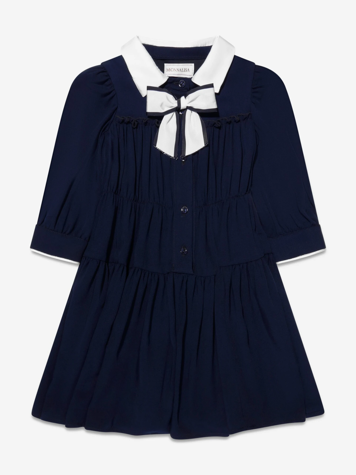 Introducing the Girls Annabeth Ruffle Dress in Navy, a high-end designer piece by Monnalisa. This exquisite dress is perfect for any special occasion, enchanting with its elegant design and comfort. Here’s why it’s a must-have: