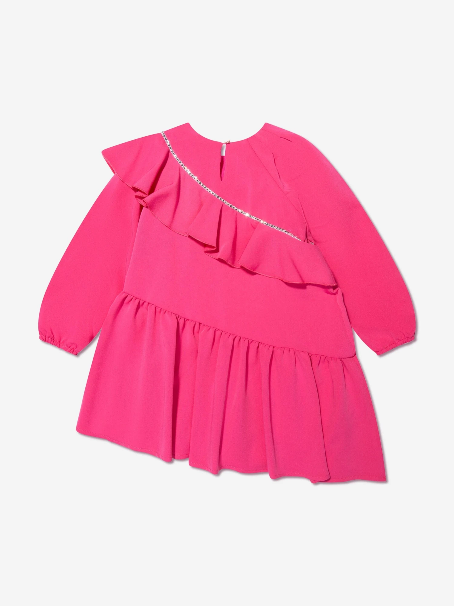 • Elevate your child’s wardrobe with this chic Girls Embellished Ruffle Dress in Pink from Monnalisa. Purchase now and let your little girl strut in style!