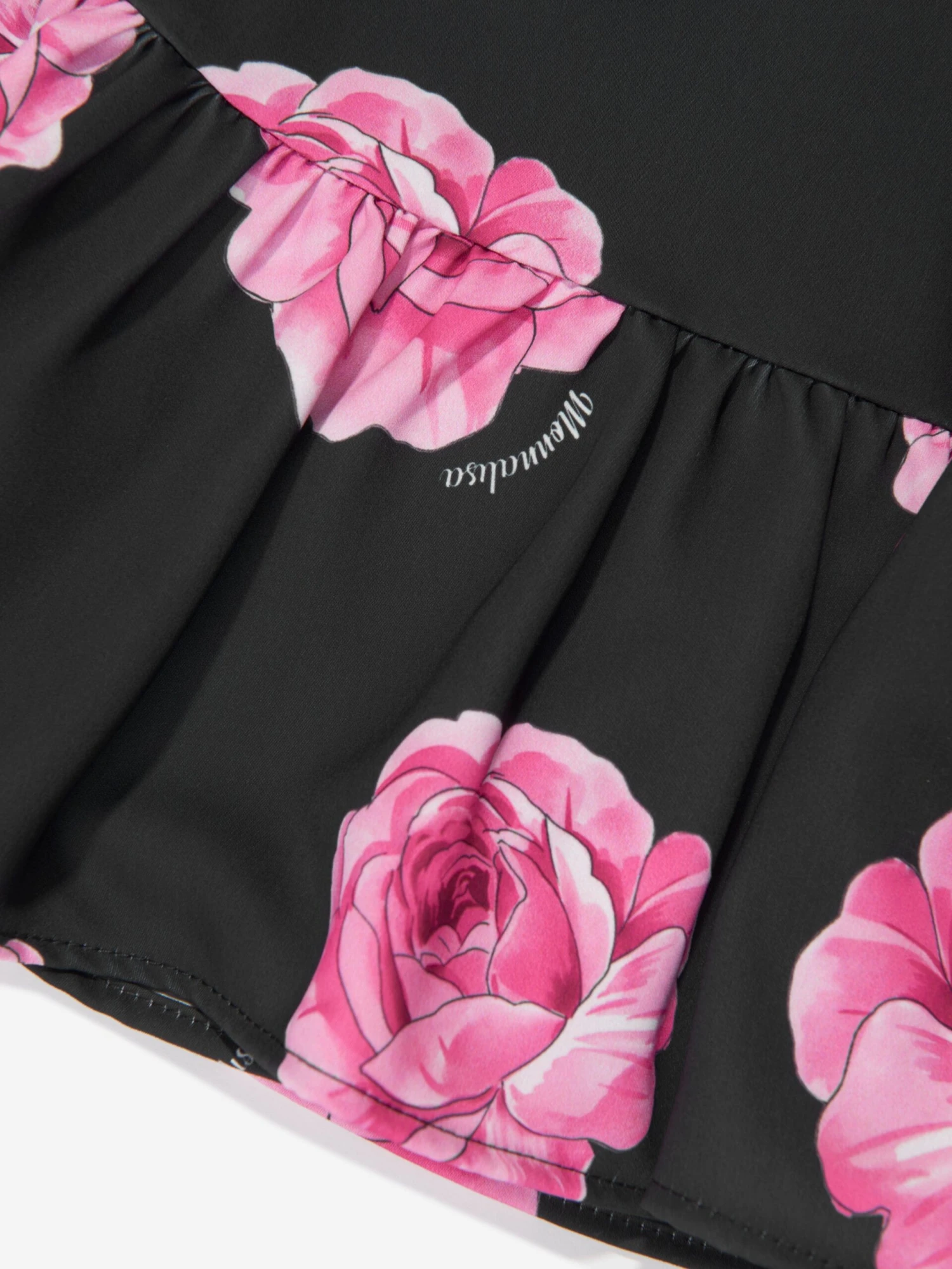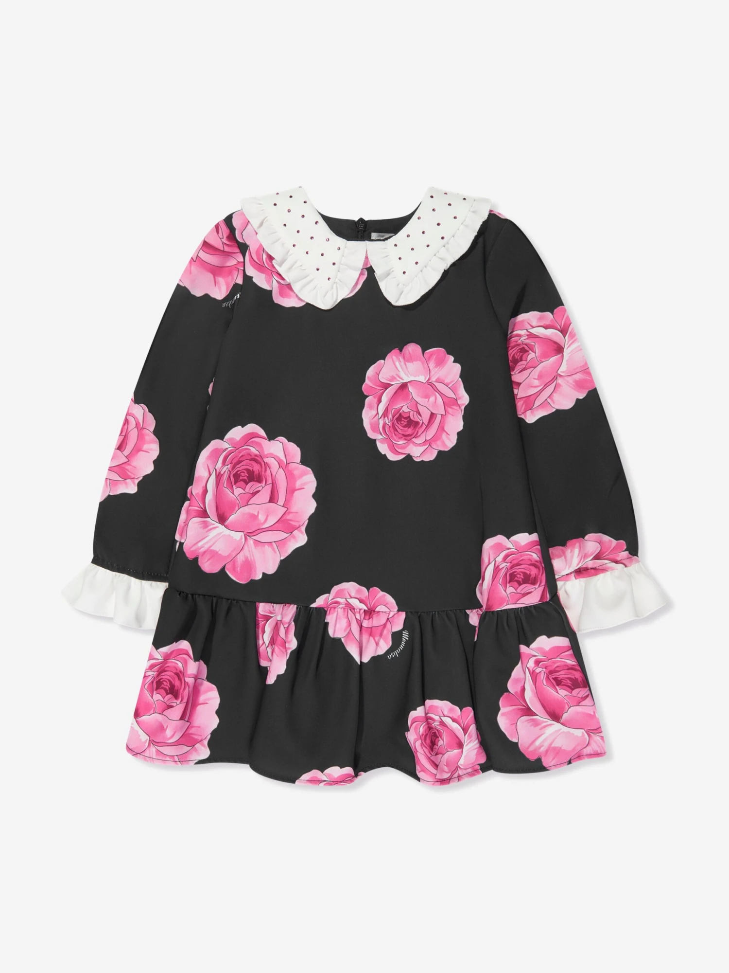 Introducing Monnalisa’s Girls Floral Dropped Hem Dress in Black, a luxury staple for your girl’s winter collection!