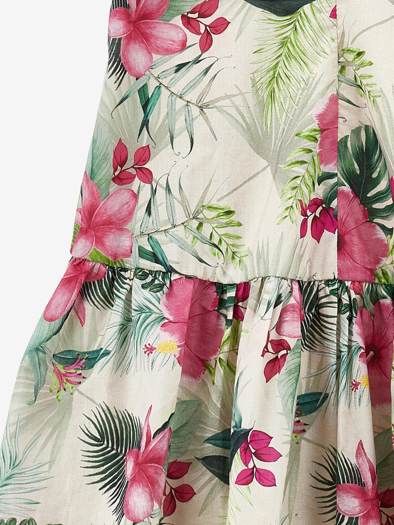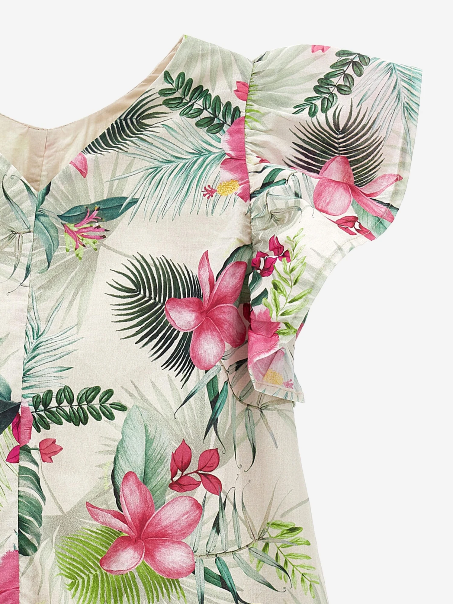 Presenting the Girls Jungle Dress in Multicolour, a prominent beige-hued addition to your little girl’s wardrobes. The key features that make it a unique creation are: