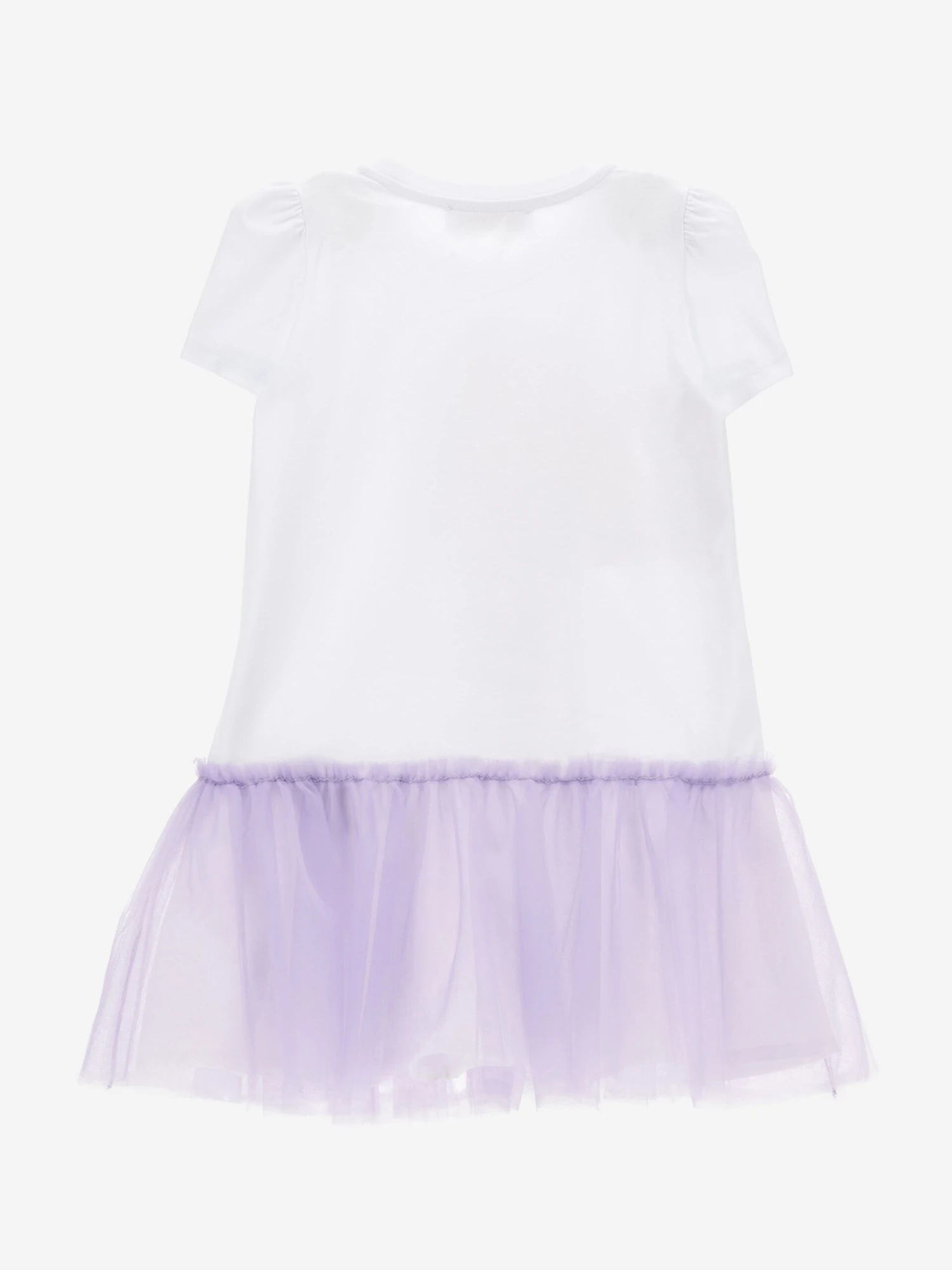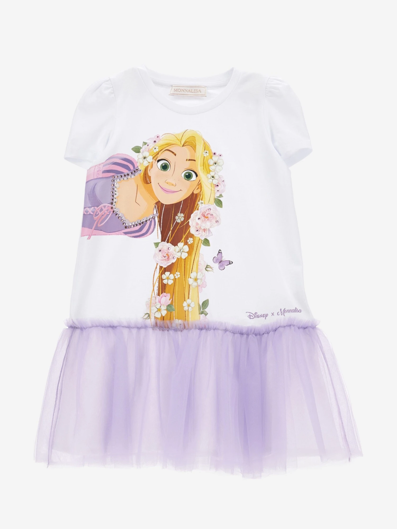 Monnalisa incorporate passion and innovation in their beautifully crafted designs. This girls romantic free time t-shirt dress is a captivating choice. Crafted in cotton jersey, it showcases a Rapunzel print with rhinestones, a logo and cap sleeves. The sophisticated piece is complete with a coloured frill with light gathering.
