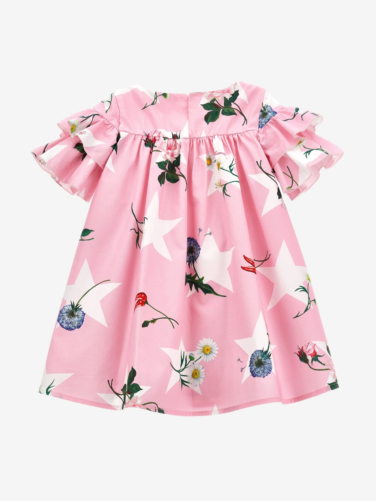 Monnalisa’s dreamy Avant-Garde aesthetics are both charming and divine. This girls rosa fairytale dress captures the enriching imagination of the Italian label. Crafted in a maxi star printed cotton poplin via a bateau neckline with short bell sleeves and a layer of ruffles. It will be her perfect summer dress.