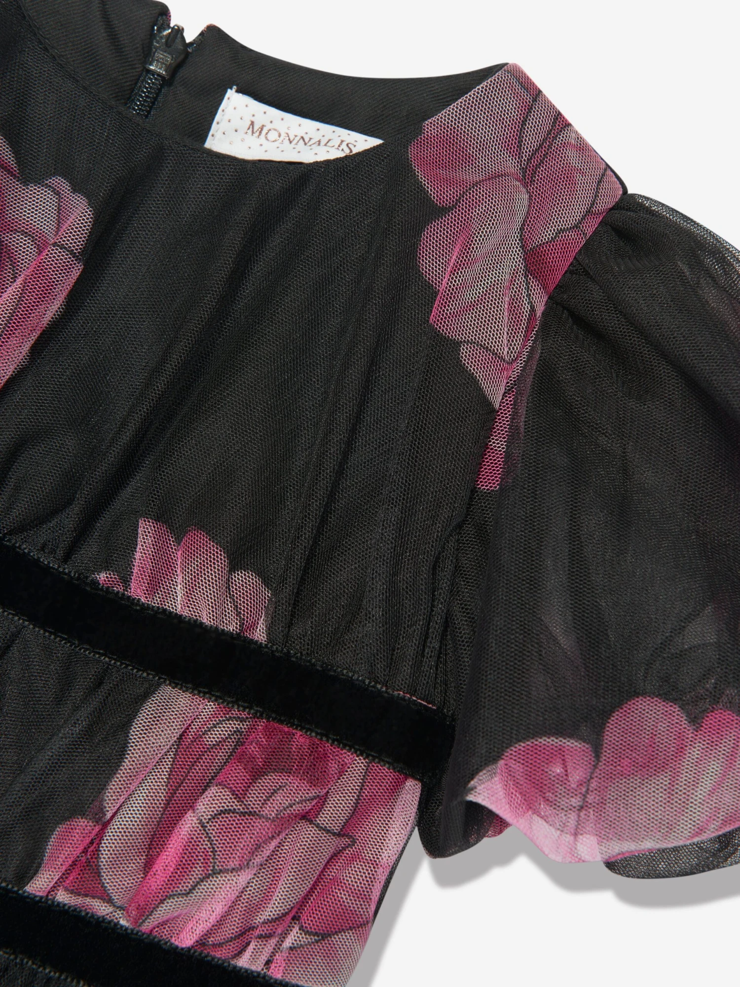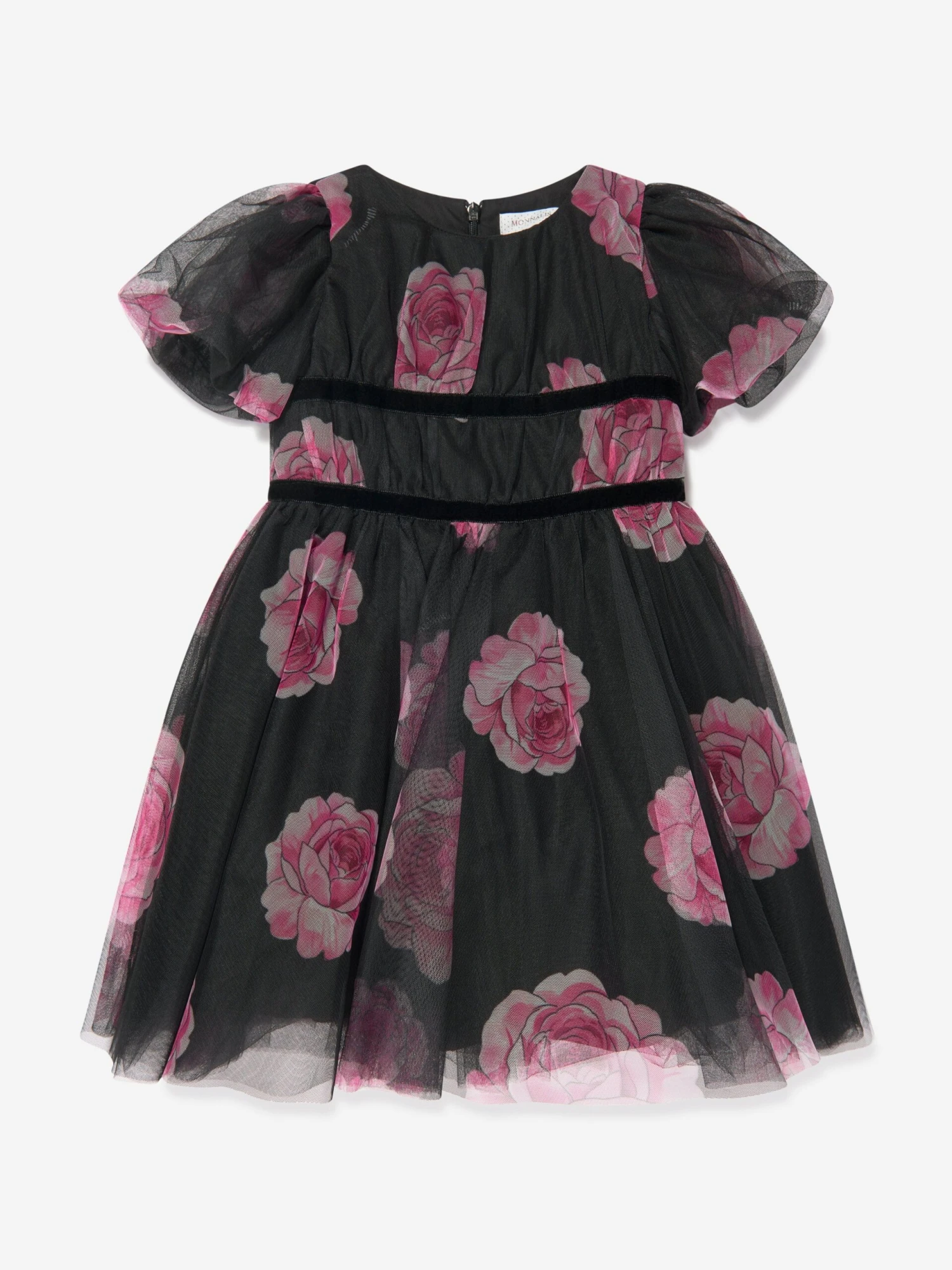 • Amp up your girl’s fashion quotient with the Monnalisa Girls Tulle Flower Print Dress in Black. Order now for an effortlessly stylish statement!