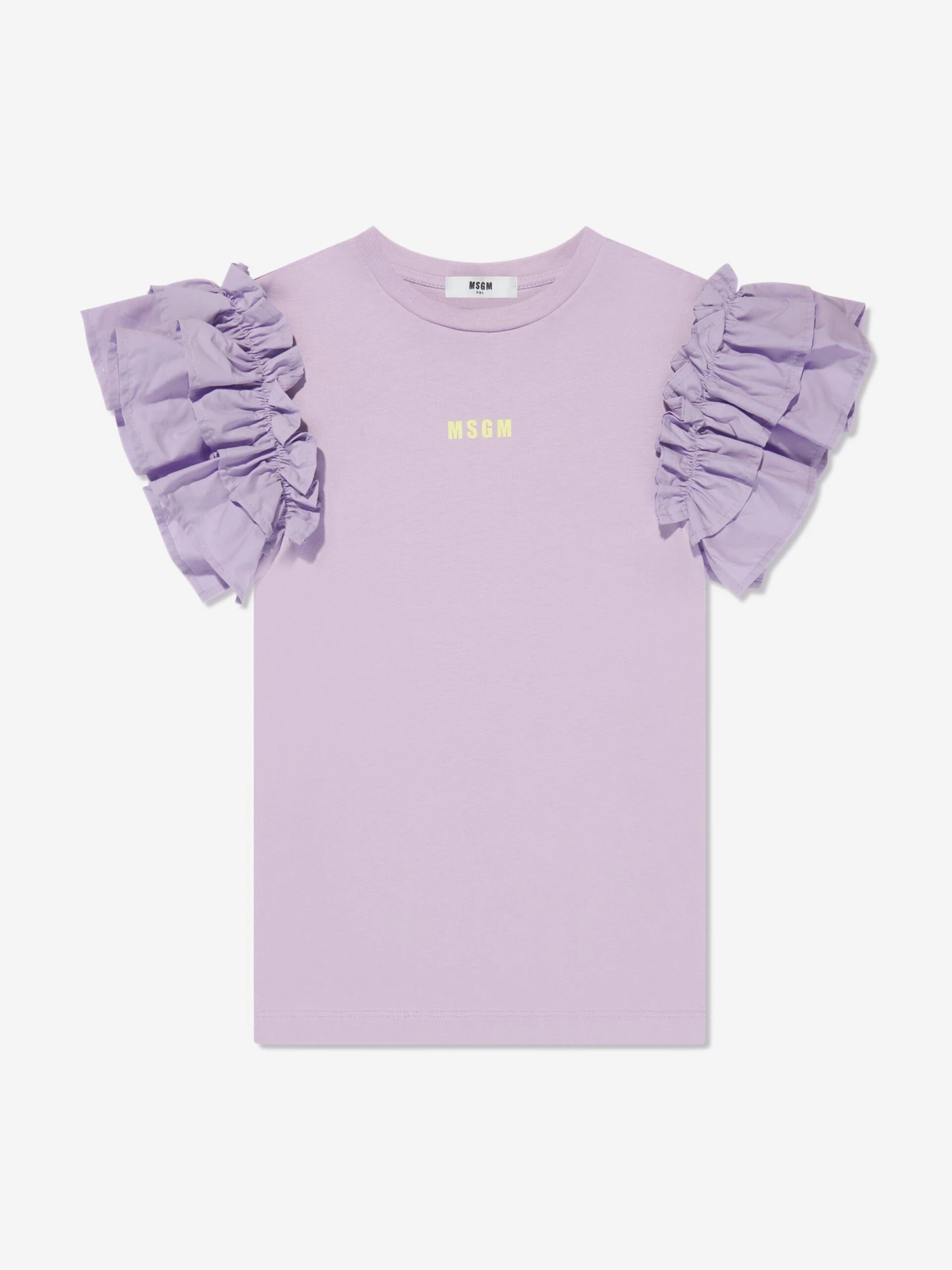 Introducing the MSGM Girls Ruffle Sleeve T-Shirt Dress in a delightful shade of Lilac, an essential summer attire for the young fashionistas. Here’s why this dress is indispensable: