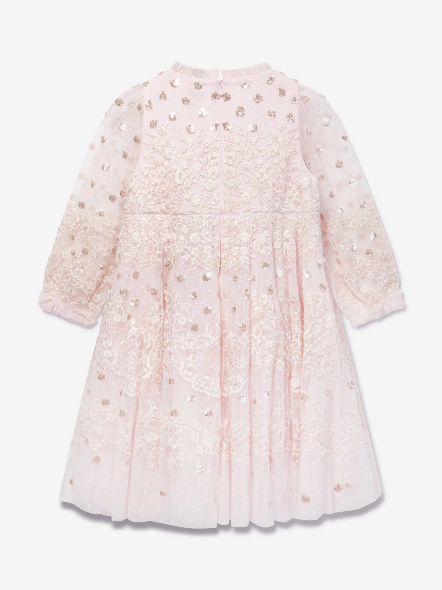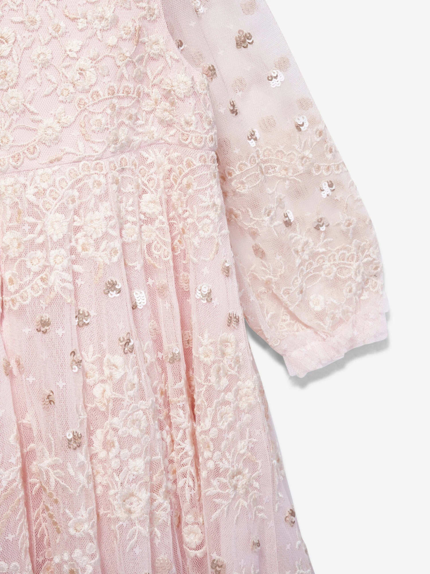 Taking inspiration from early 1900s fabric styles. This Beatrice kids dress by Needle & Thread is a combination of tradition and innovation. Made in a netted tulle material with mesmeric cream polka dot patterning, tiered layering and long elasticated puffy sleeves. She will emanate unparalleled sophistication.