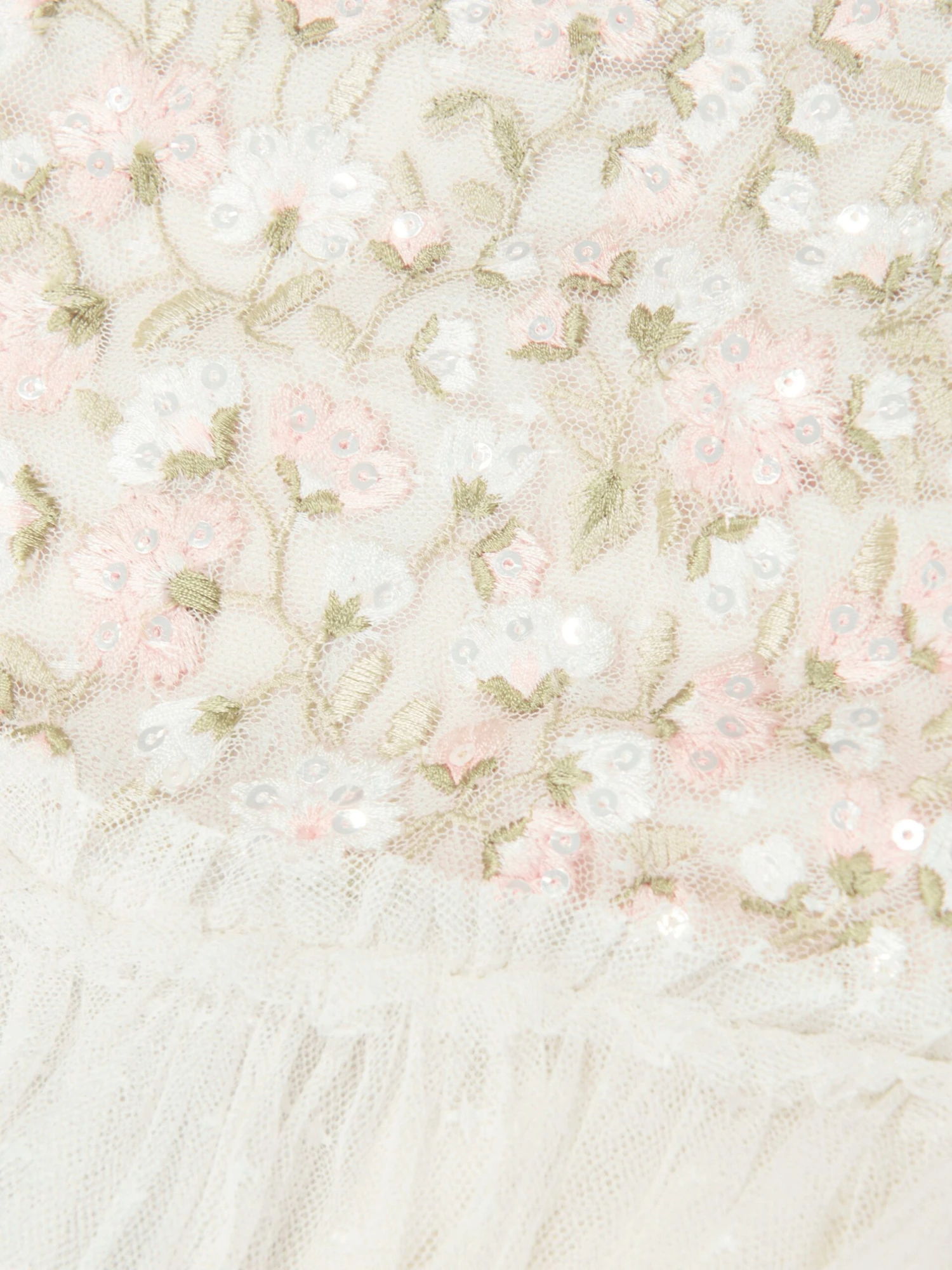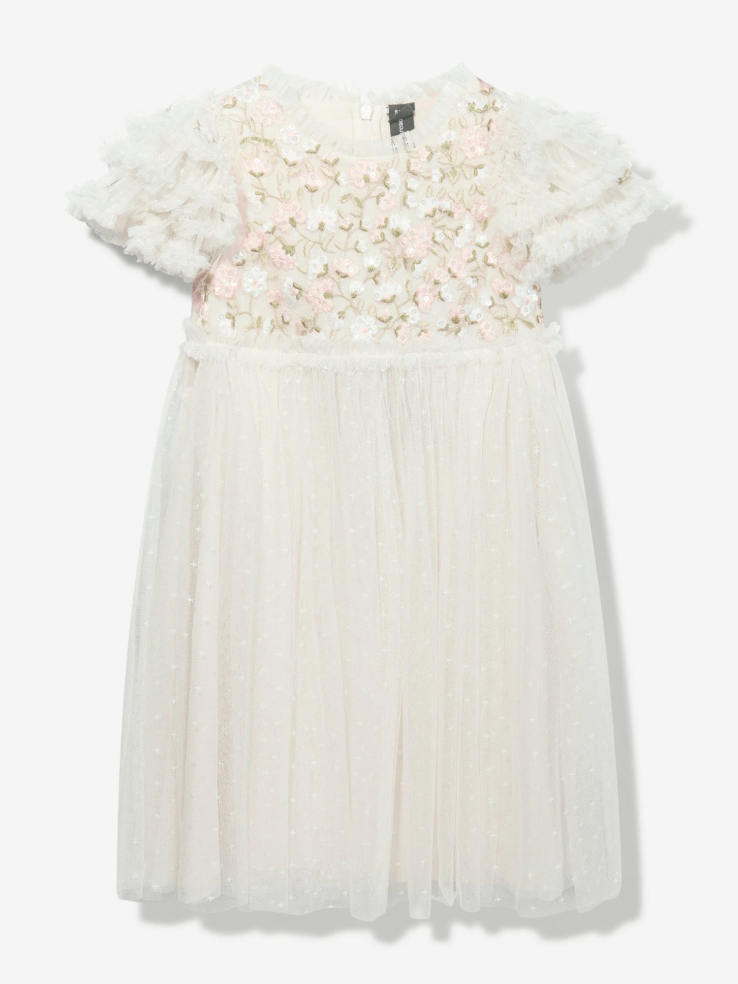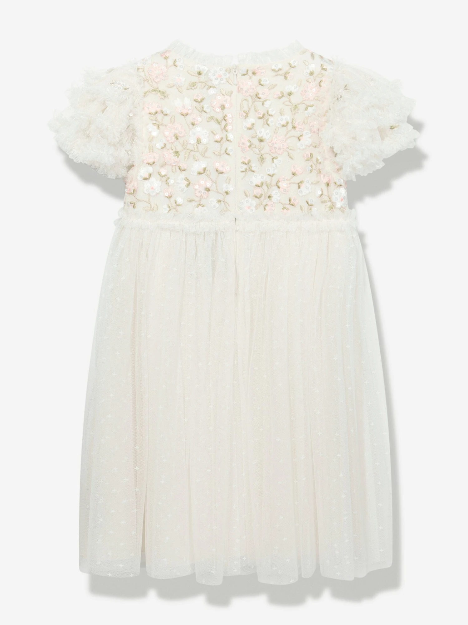 Introducing the exquisite Girls Posy Bodice Dress in Ivory, a celebrated creation from Needle And Thread. This dress is the epitome of elegance, designed specifically for your girl’s Eid attire. Here are its distinguishing features: