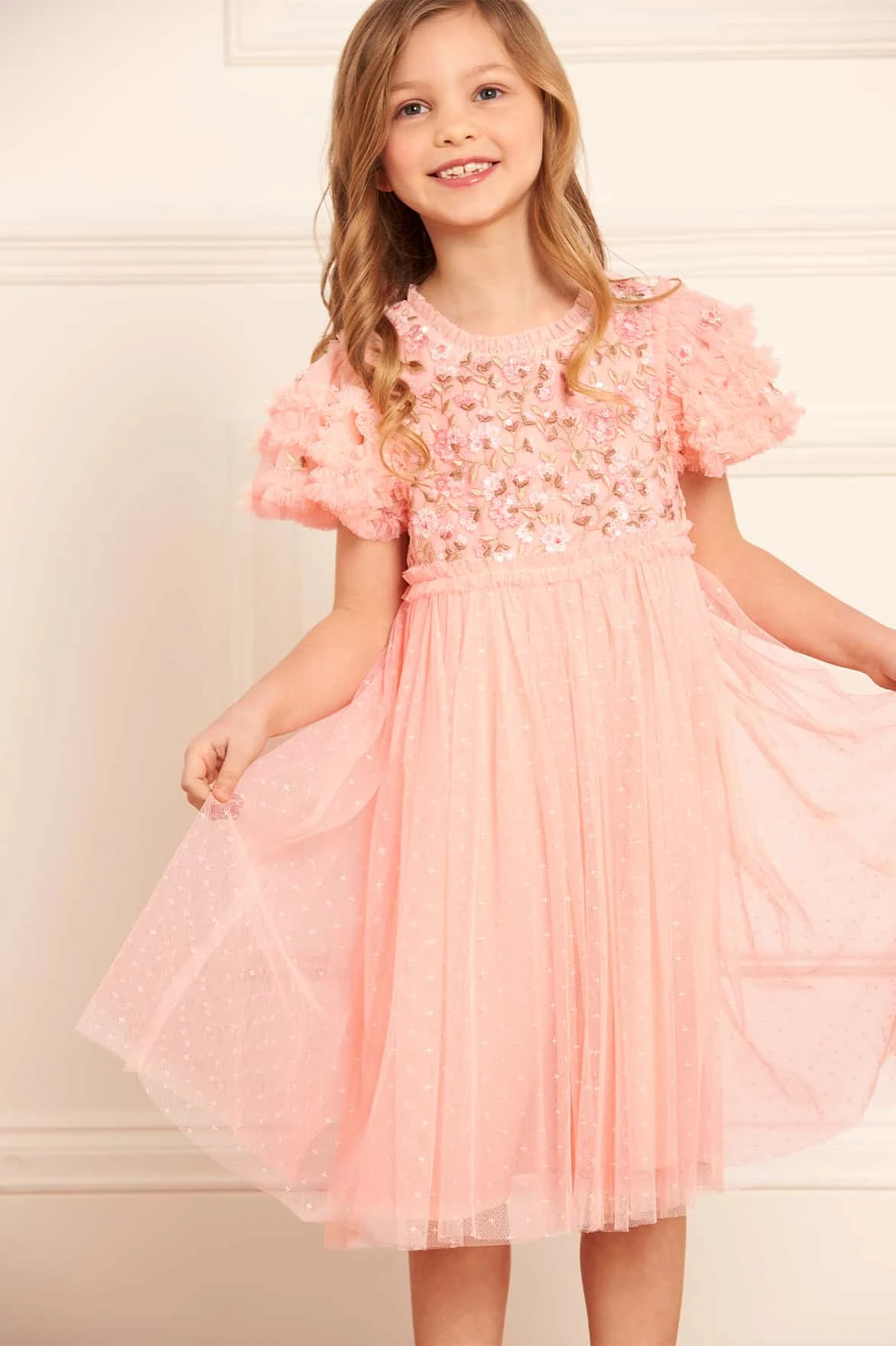Introducing the Girls Posy Bodice Dress in Pink by Needle And Thread – an exquisite choice for your girl’s Eid outfit! Presenting voguish features: