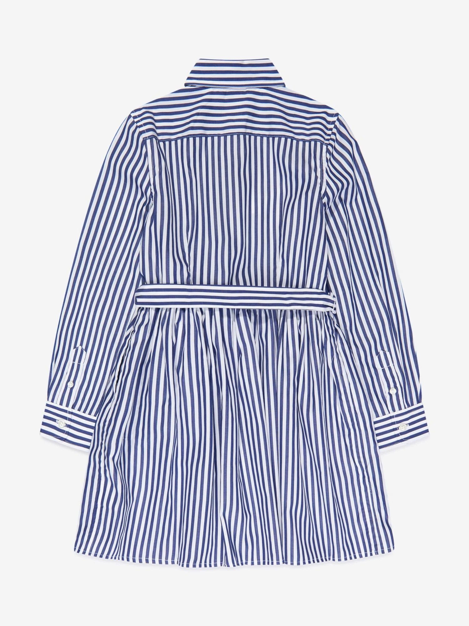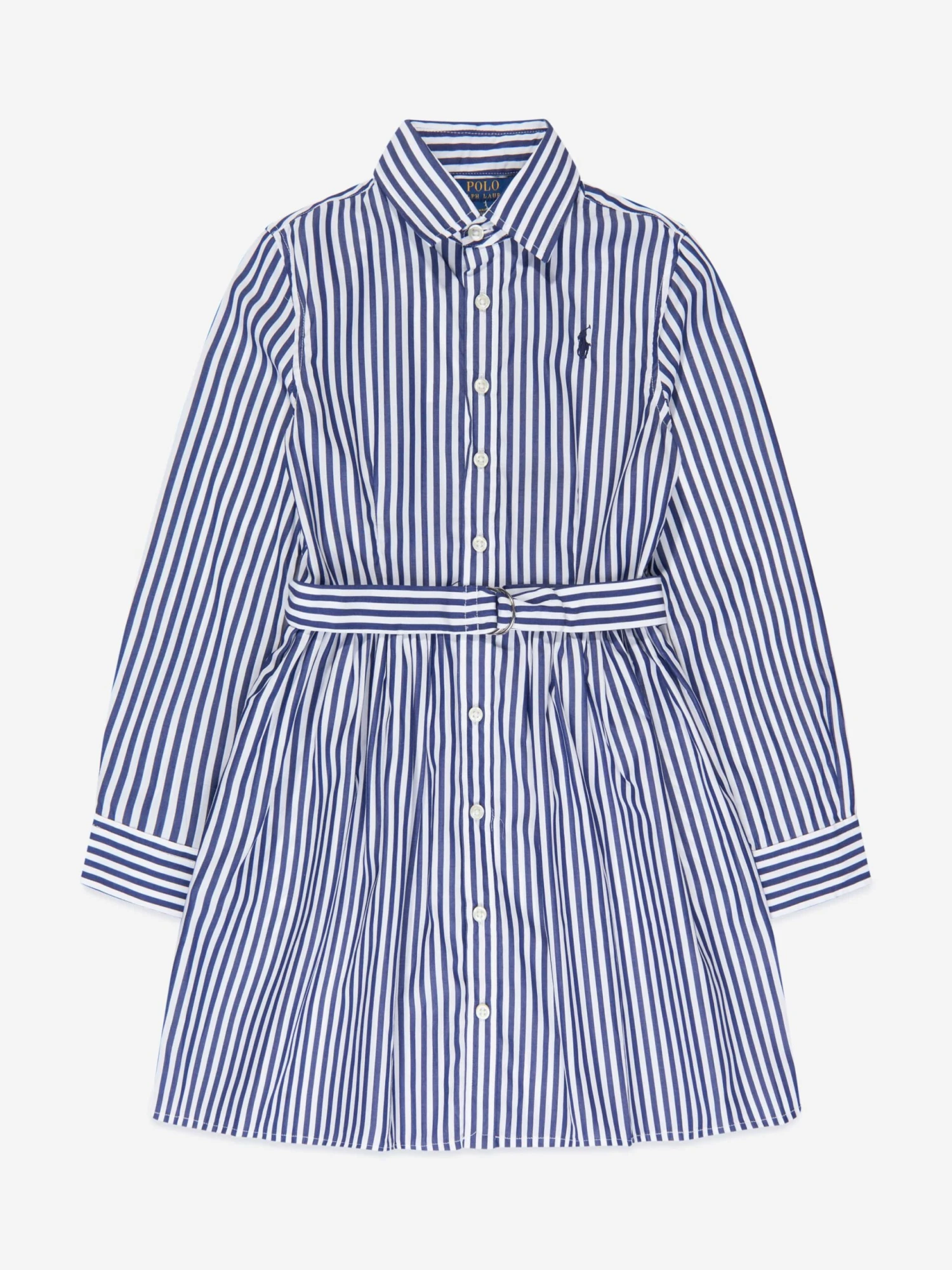 Introducing the Ralph Lauren Girls Blue Striped Cotton Shirt Dress – a designer touch for your girl’s wardrobe!