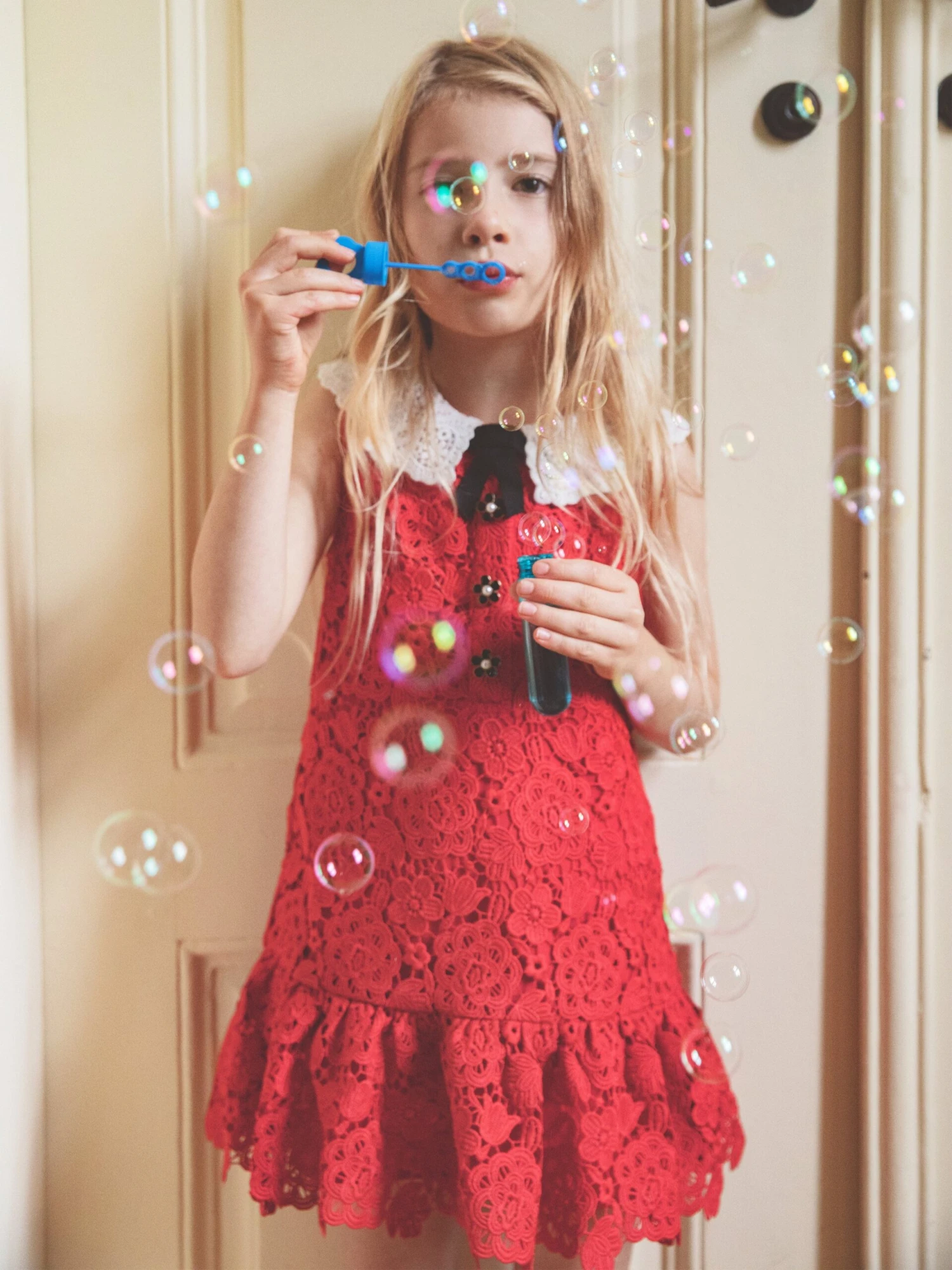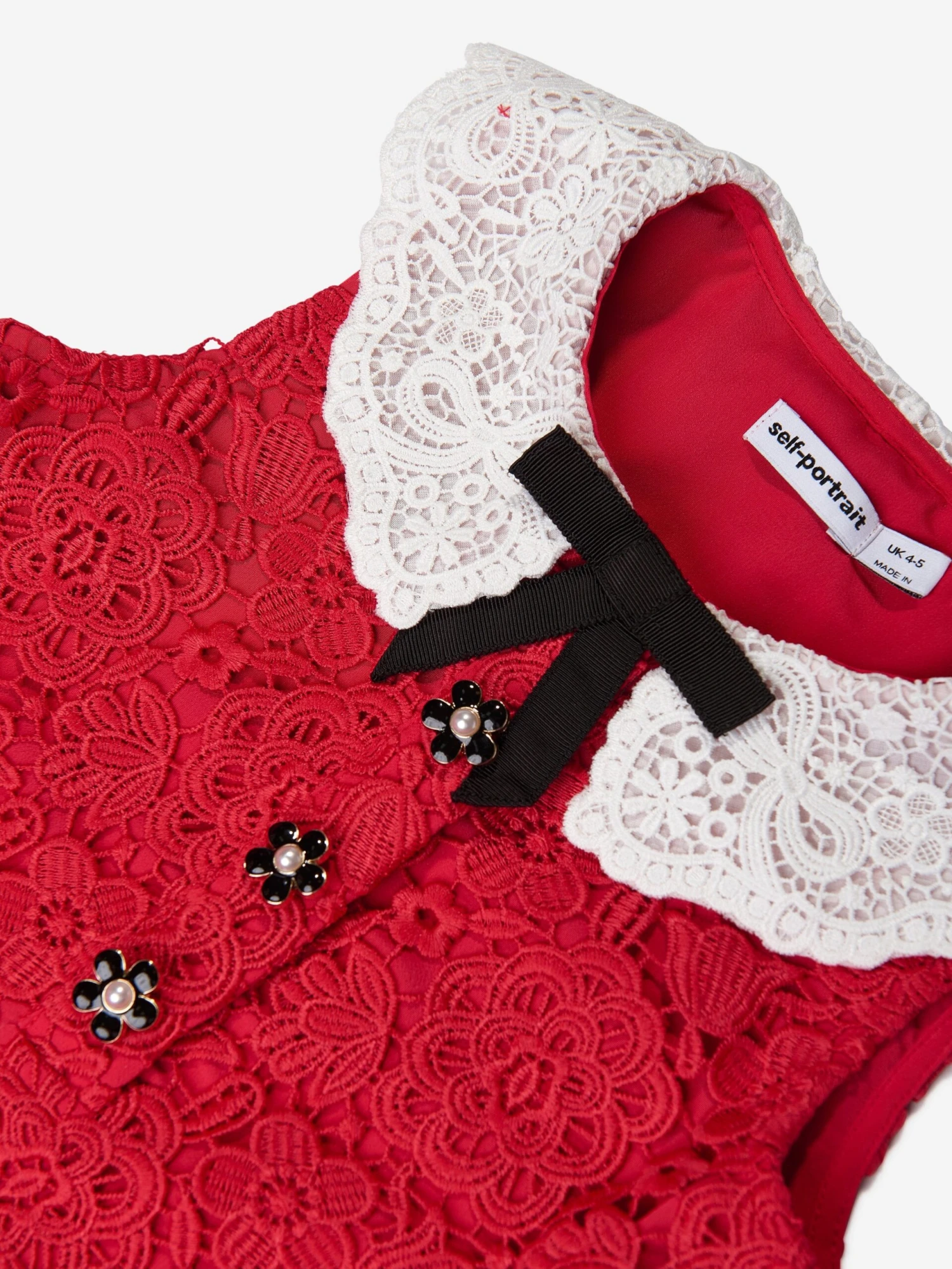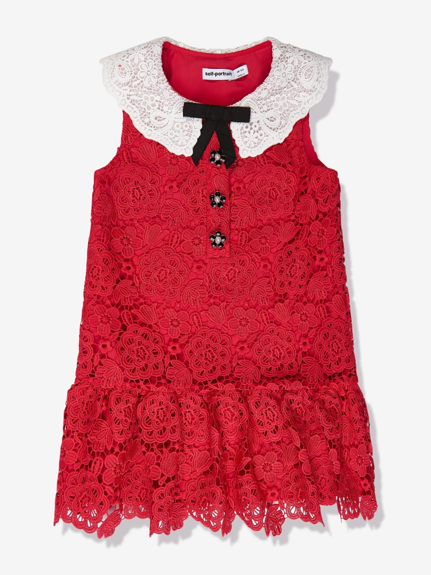 Self-Portrait incorporate beautiful properties into their exquisite designs. This girls cream soft knit cardigan captures the label’s passion for traditional concepts untainted by superficial trends. Crafted in an intricate lace material with a white contrasting Peter Pan collar, diamanté buttons and a tiered hem.