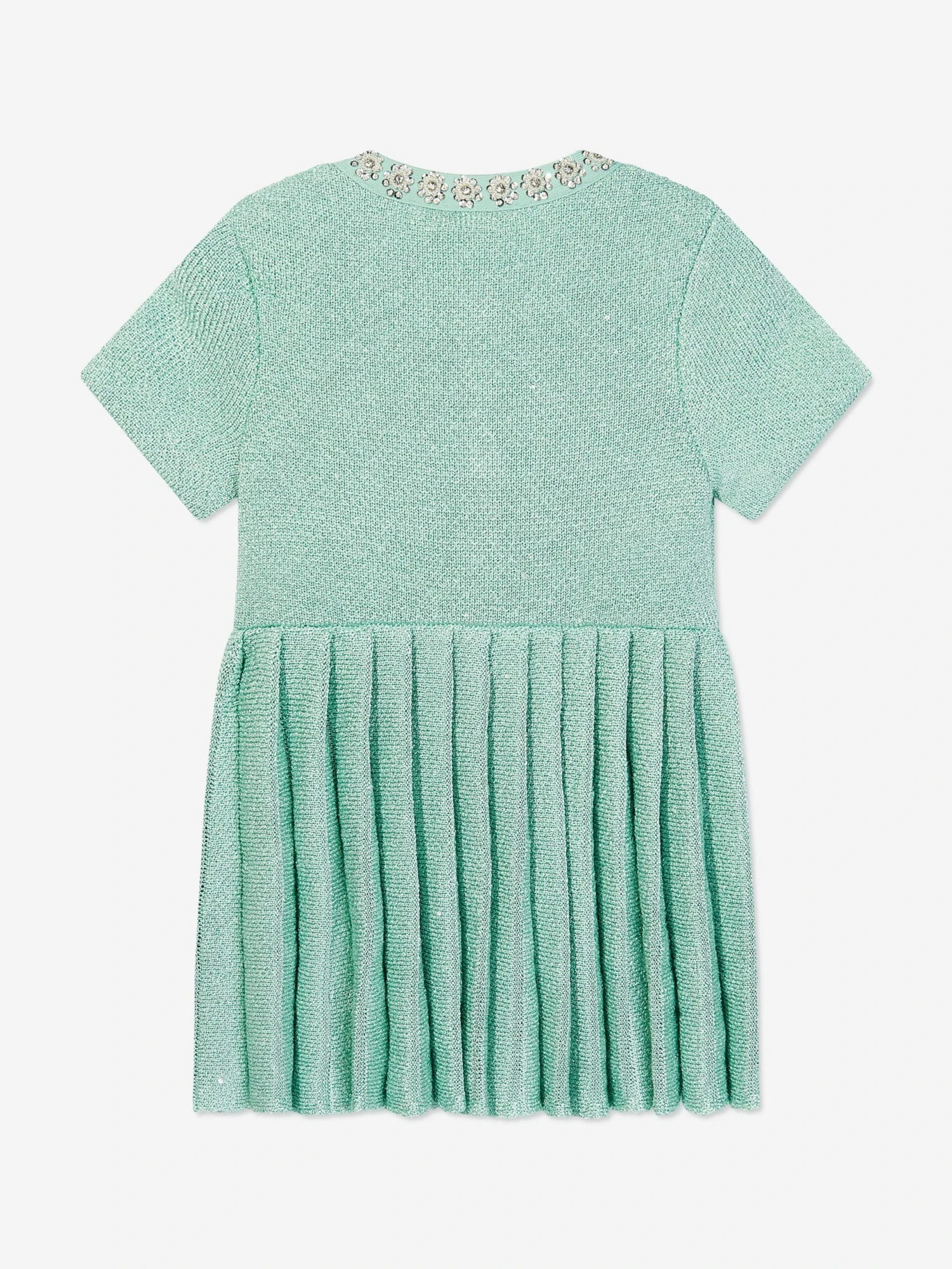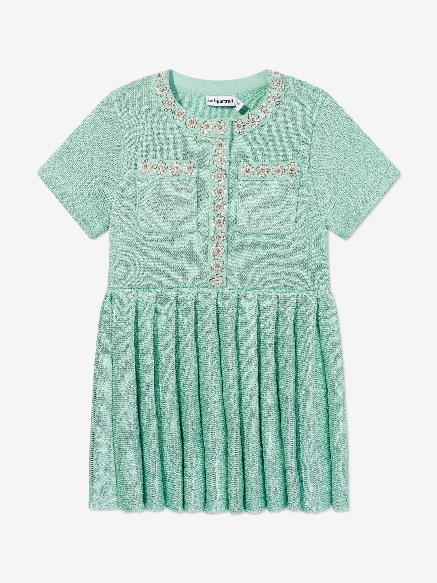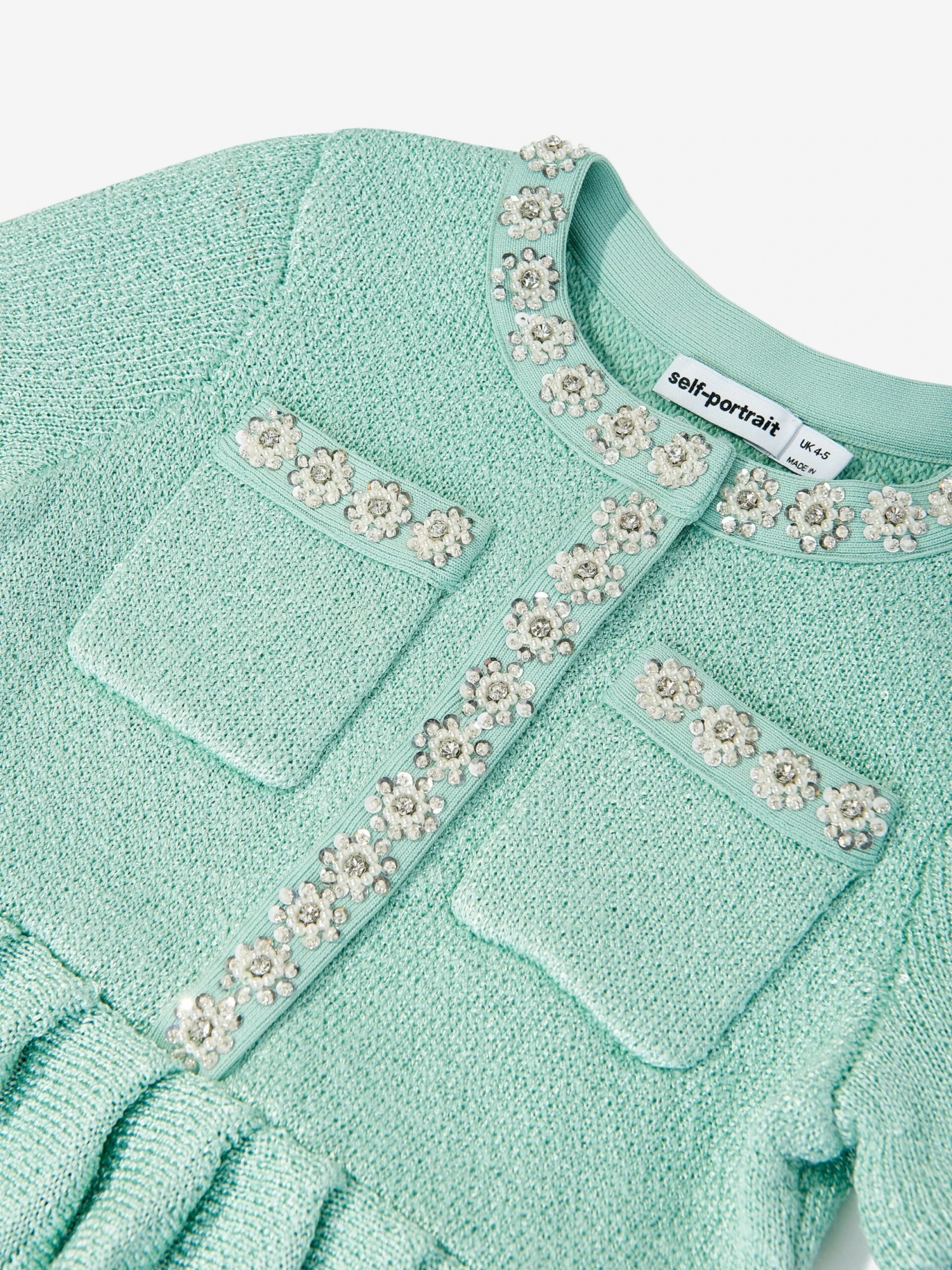 Introducing the Girls Sequin Knit Dress in Green by Self Portrait. This dazzling number is a wedding essential for your little fashionista. The best parts include: