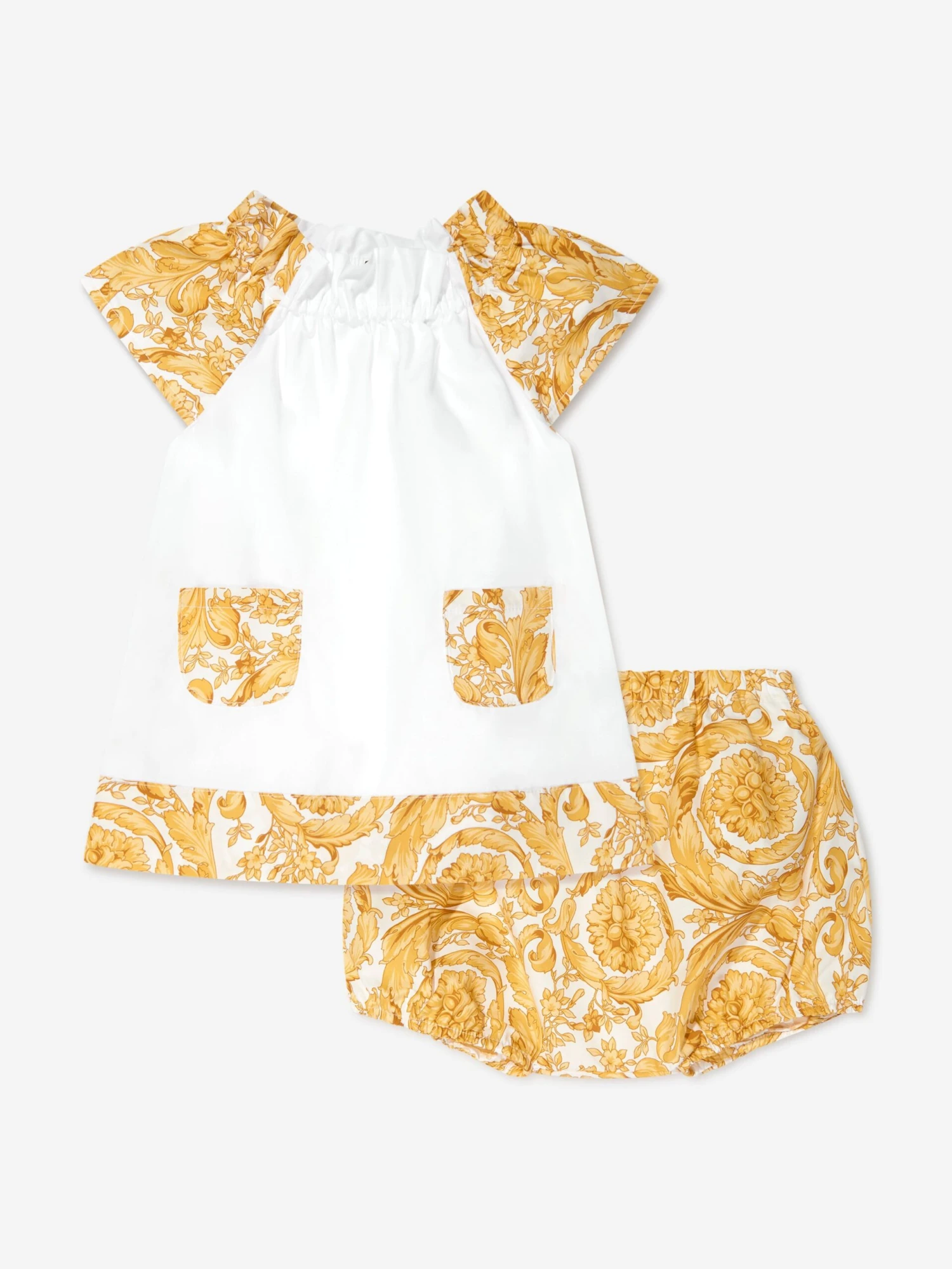 Versace depict extraordinary precision in their immaculate designs. This baby girls cotton poplin dress set is reflective of the Italian label’s passion for glamorous abstracts with an innovative twist. Crafted with Barocco patterning, she will be obsessed.