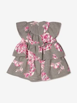 Versace project mesmeric detailing and Italian craftsmanship into their opulent aesthetics. This girls shirt dress is reflective of the label’s dynamic technological properties. Crafted in a fluid silk twill featuring the Blossom Kids print all-over, a matching belt and ruffle sleeves. She will be obsessed.