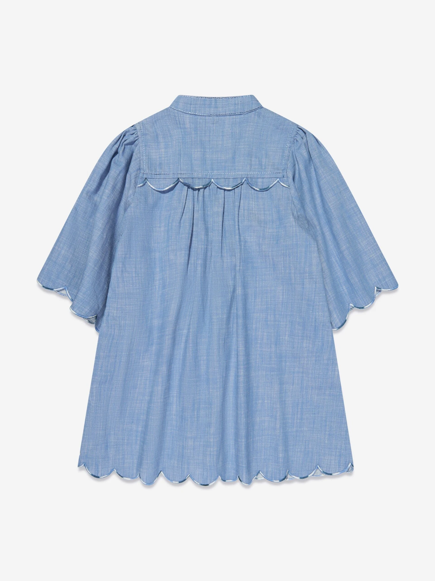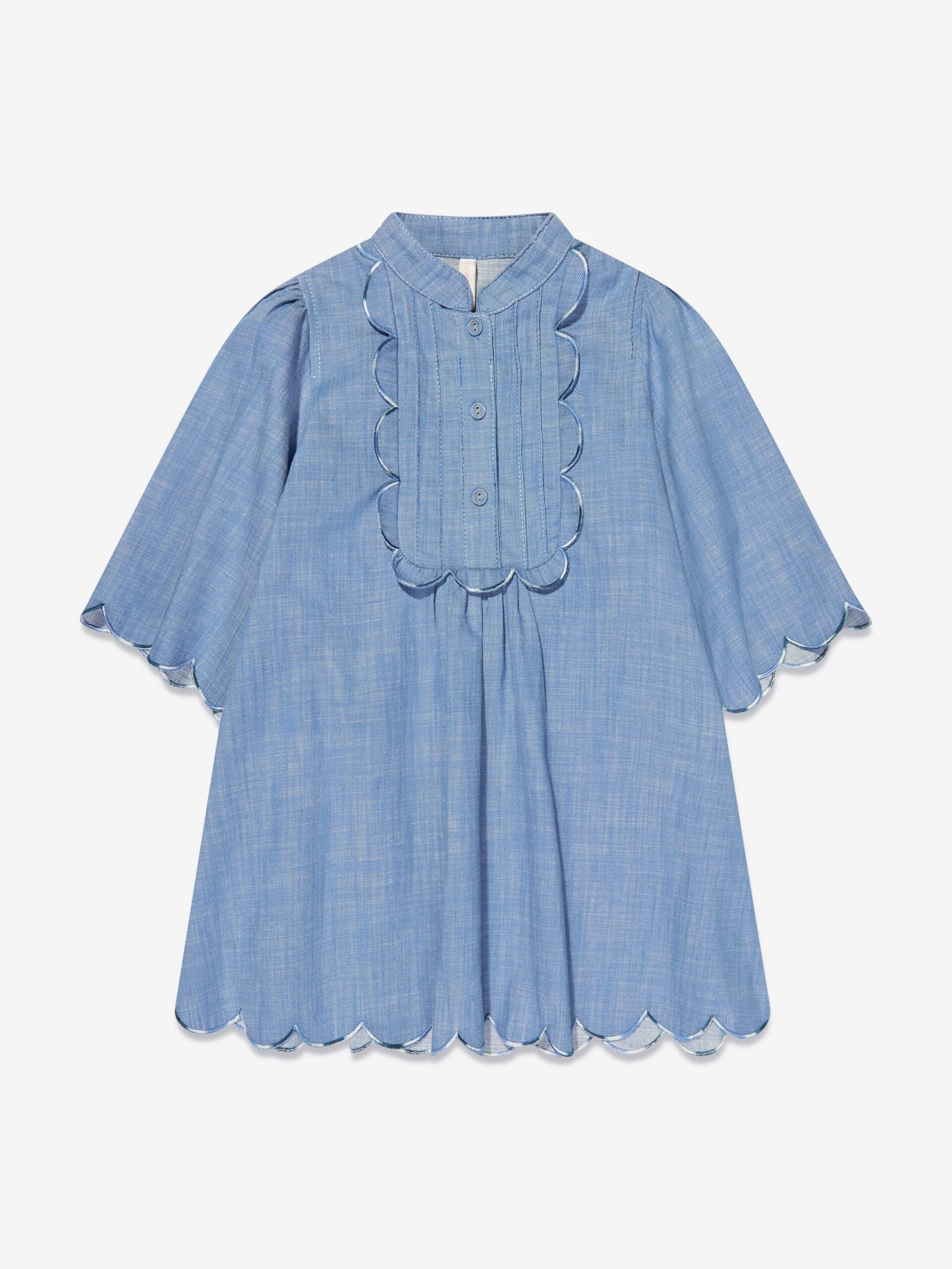 Australian label Zimmermann redefine the strategy of fashion by exploring their own identity that is neither trend-driven nor futuristic. This Junie chambray dress captures that brand integrity. Crafted in a denim blue style, it features scalloped cuff bell sleeves, a scalloped trim around the tiered bodice and hem. She will be obsessed.